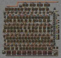>>44046555 Эта хорошая, но ты мне рассказал как равномерно выгружать по сундукам, а я сделал чтобы из вагона мне выгрузили ровно 235 железок. Ровно бля, и вобще ни одной больше. Как же это красиво Тоже двумя комбинаторами делается, лапке можно задать любое число как размер пачки. Ну ты и задаешь сколько железок надо, когда их станет меньше максимальной пачки, он столько и возьмёт. Но я раньше грузил 5-ю лапками и одним обратно возвращал лишнее, а щас просто уменьшается количество работающих лапок по мере уменьшения оставшихся нужных ресов. Вобщем я хз зачем, но круто же. А остальной бог-машина - это моя рукодельная LTN, которой я тут иногда хвастаюсь.