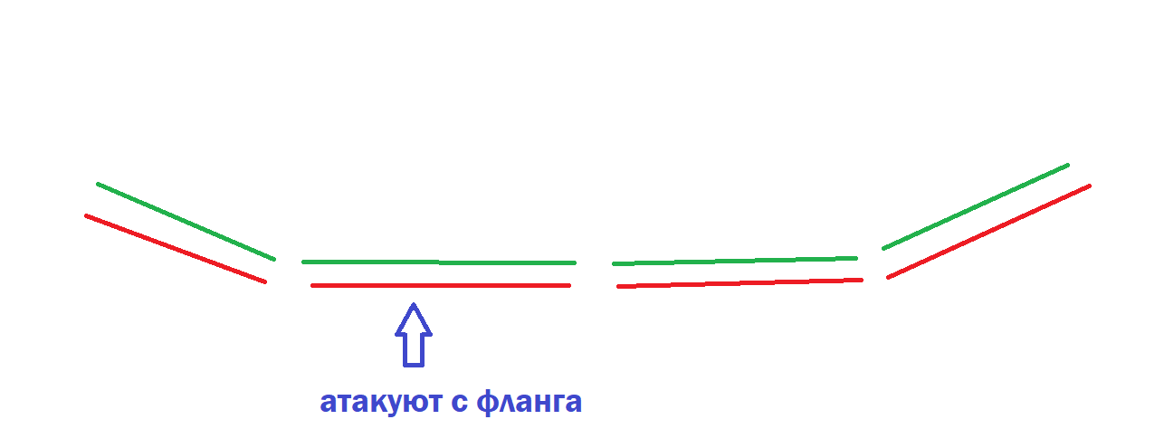 Те, кто отмечен стрелкой, были подвержены, якобы, атаке с фланга, хотя вы видите, что все стоят плюс-минут одинаково напратив врага и никого не окружили, почему тогда именно этот отряд ругался, а остальным было норм.
