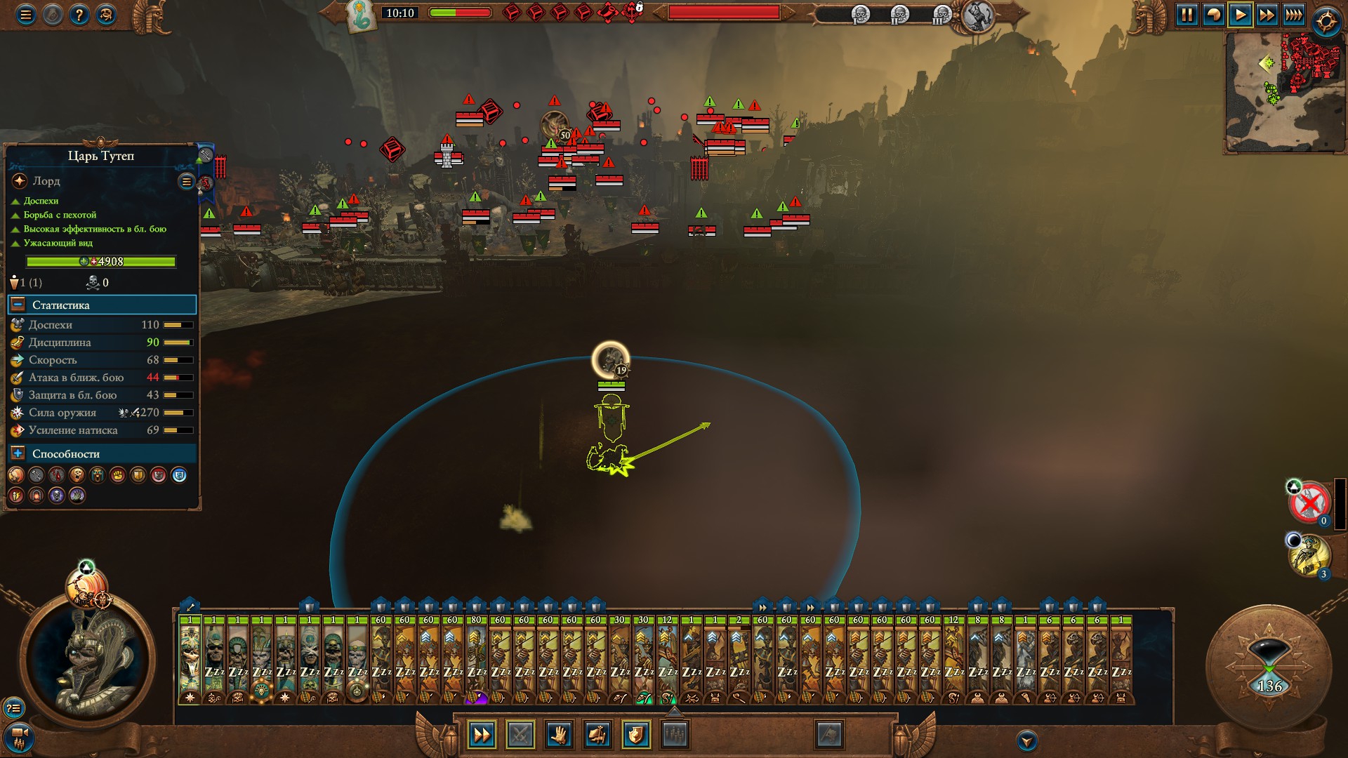 Алсо, томбы не так уж и плохи, нормально ими играть можно. Да, ограничение на армии поначалу неприятно очень, но юниты у них нормальные совершенно. Колесницы по пехоте отлично катаются. И Сетра на колеснице внезапно силен. Раньше всегда на сфинкса его сажал, а тут че-то решил для разнообразия попробовать колесницу. И не зря! Он как паровой каток давит всю пехоту под колесами. Вес огромный, из любой кучи выезжает легко. Не пожалел ни разу. Хотя вру, был случай, когда он на колеснице застрял в мортирах, писал в прошлом треде про это... Ну и томб гвардия под Сеттрой дико мощная, почти неубиваемая. От орков я отбился в итоге, они мира запросили, я согласился. Теперь у меня уже четыре армии, я побил Рапанс, Архана, почти всю пустыню очистил, только гномы в горах остались. Уже планирую сам к оркам вторгаться, пока они бесплодно с Тореком воюют.