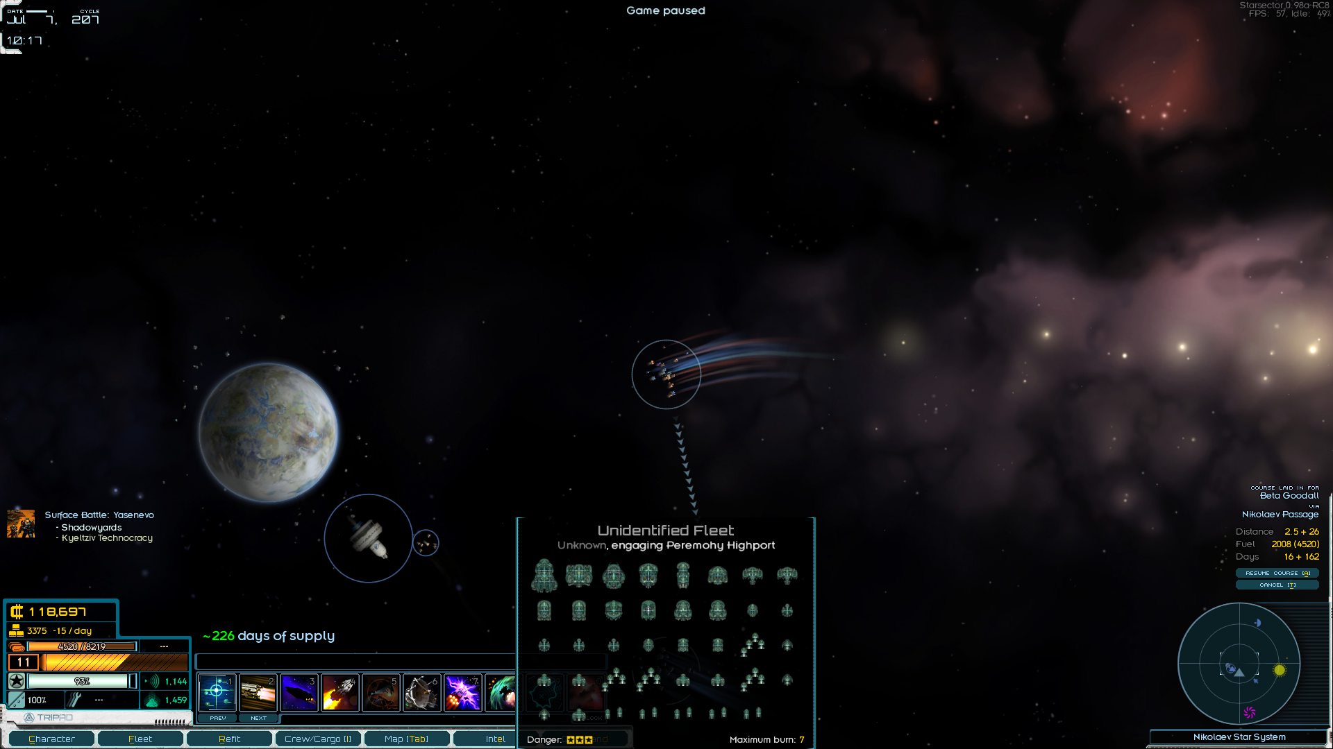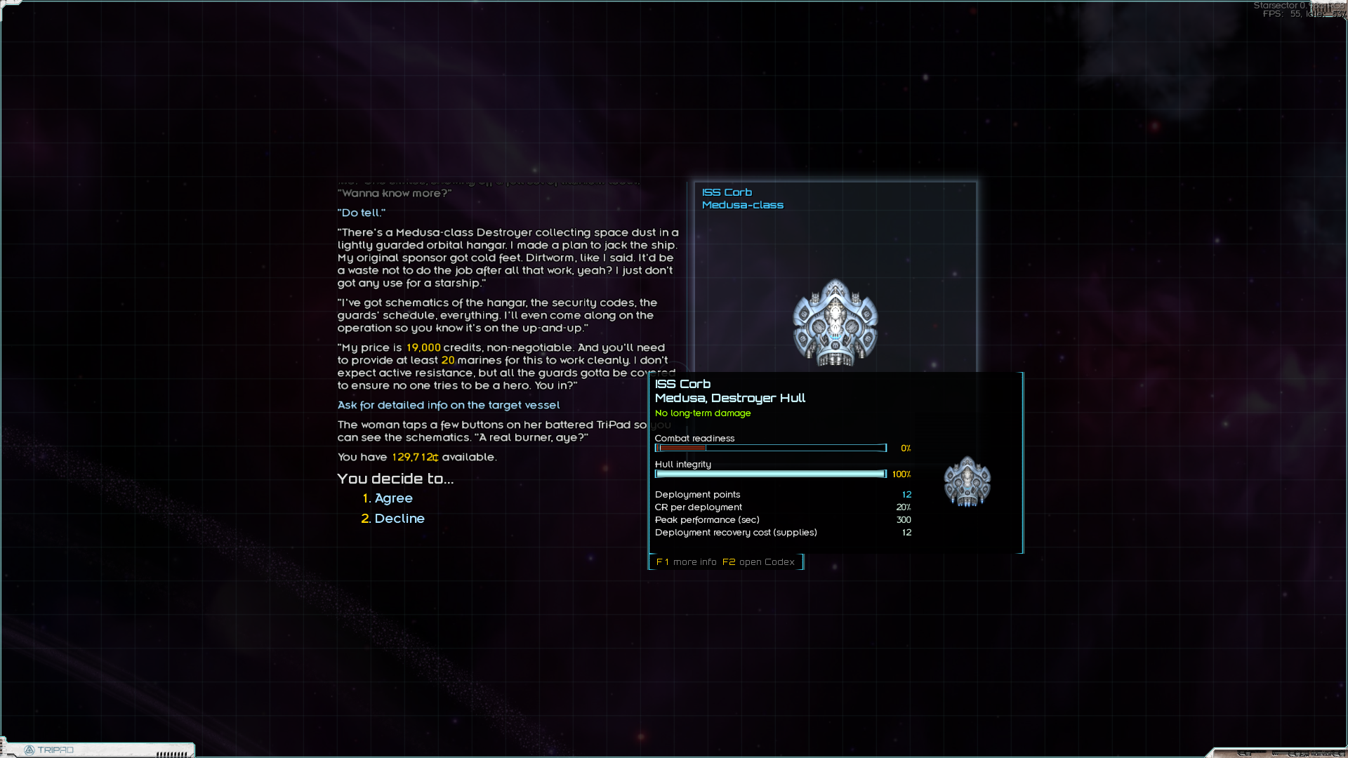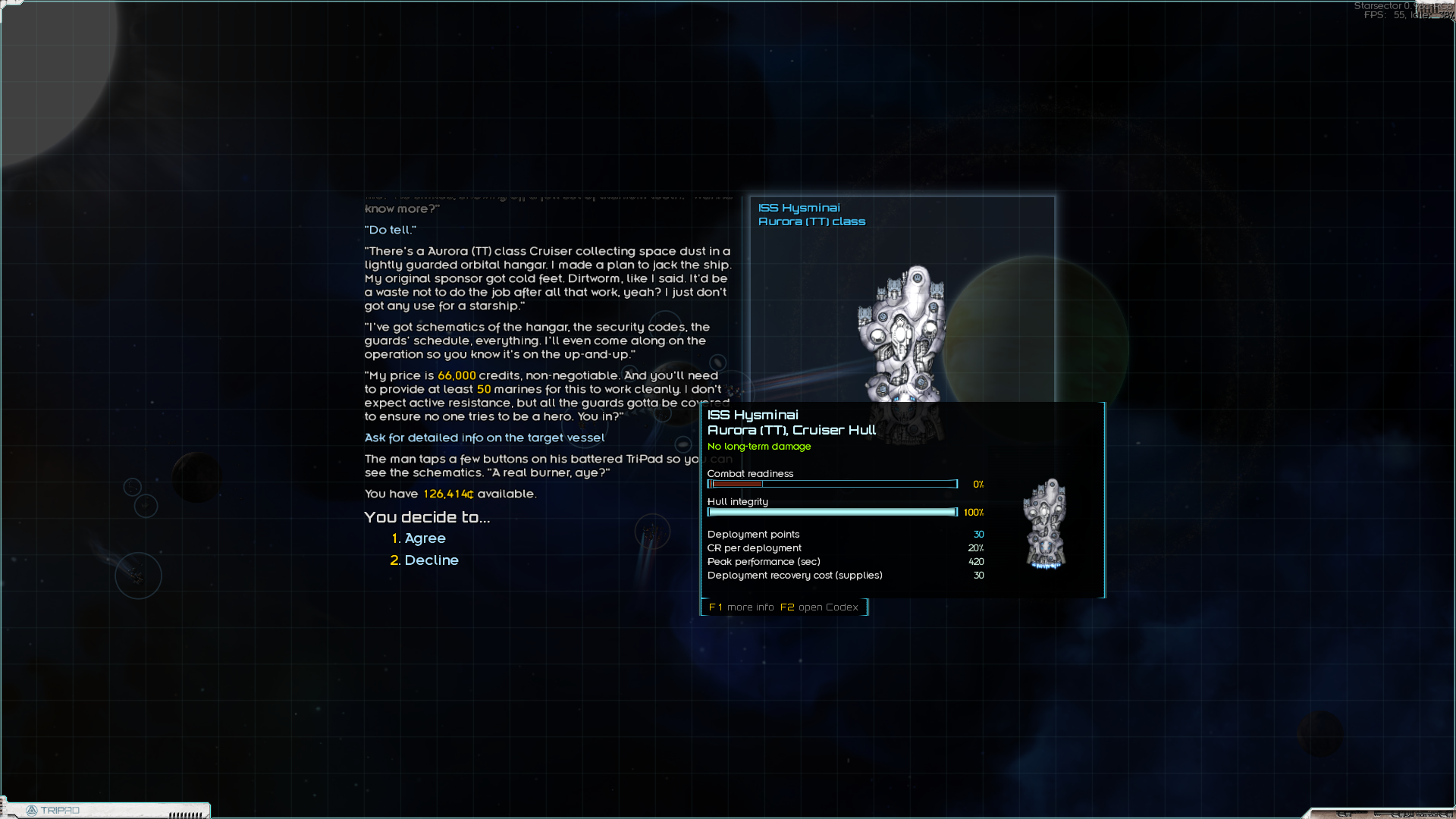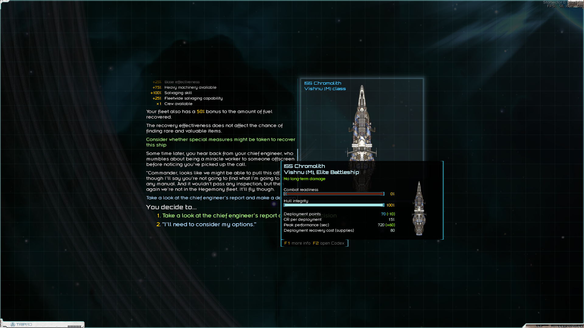 Поломная миссия кстати, я поначалу думал, что васянка, а оказалась ванилька. За чуть-чуть денег и солдат (которые ещё и не потратились) я получил нулёвый корабль за 20-25% его стоимости. Правда денег одеть его не было, посему он пока подрабатывает логистическим мулом. Теперь нужно его одеть и добыть нормальные грузовик и заправщик. Плюс 30-50к на одёжу линкору. И можно выполнять боевые контракты на 150к.