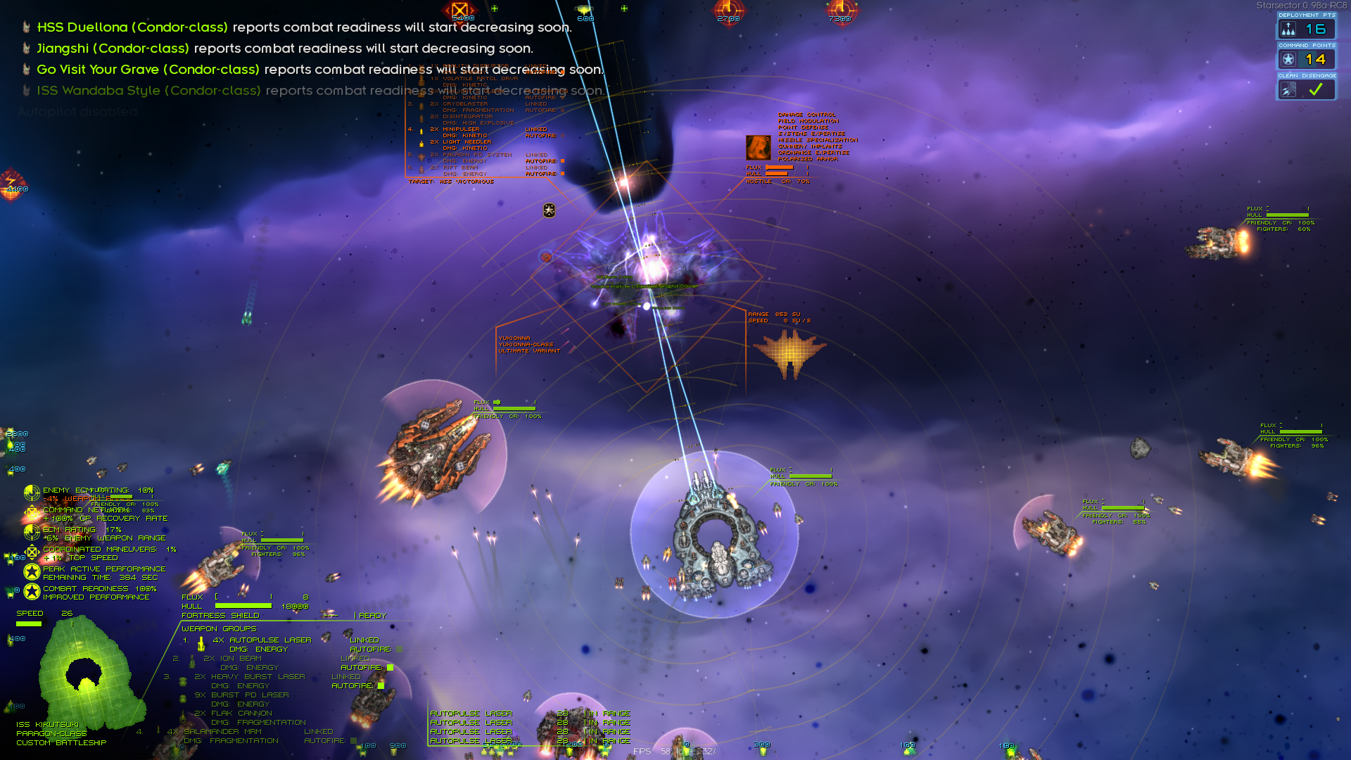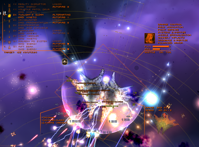 КАК ЖЕ МЕНЯ ВЗЪЕБАЛИ И ОБОССАЛИ! Я этим флотом в чистом поле унижал пачку киллфлотов Гегемонов с +50% ХР за бой и 5 Онслотами против меня (астрологи объявляли неделю комбинации "сатбомб+киллфлот"). Фармил Ордосов с двумя-тремя впрыгивающими в мою стенку Радиантами одновременно. Но тут я смог им сделать примерно половинку нихуя. Мои хайтеки тупо не могут пробить щиты! Несколько лоутеков с кинетик баллистикой убили несколько противников (без щитов они убиваются ещё нормально, но щиты бессмертны!), но потом просто потонули под толпой врагов.
