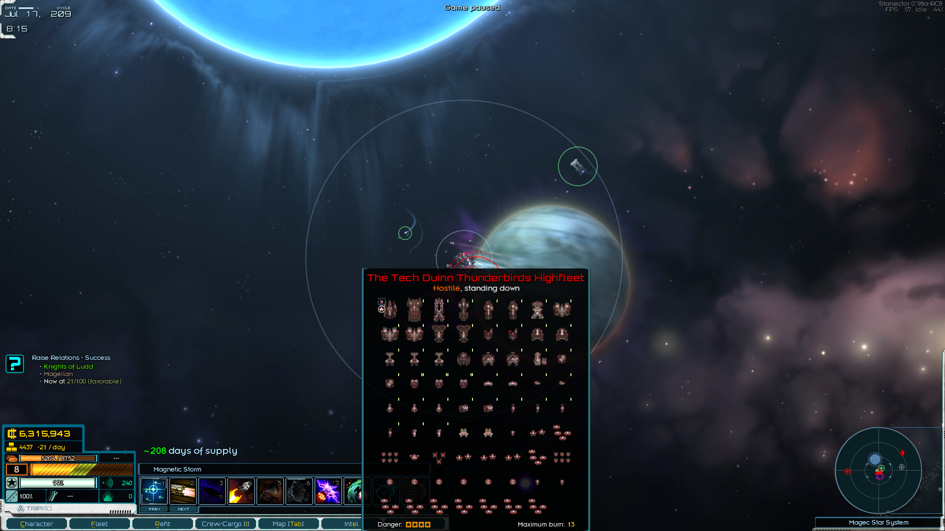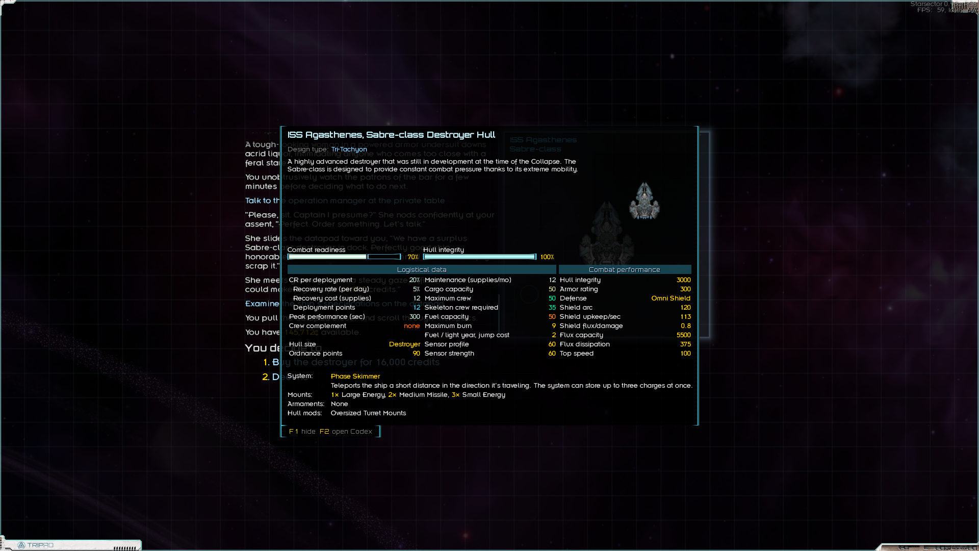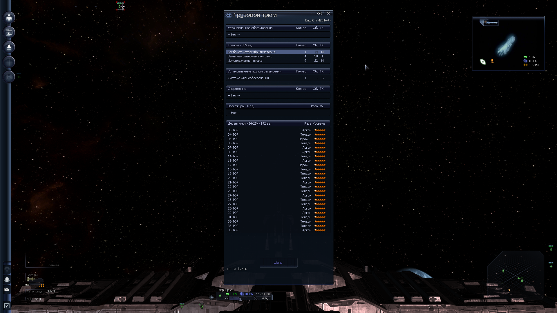 Однако ж старт - моё почтение: Появился на самом ЮВ краю Ядра у фракции дедов-пердедов "Historical Society". В целом старт себе запилил более щедящий т.к. давненько не играл, особенно с кучей модов - и фракции начинают ёбку попозже и у меня вместо маняфригата аж 2 фригата и эсминец. Ещё и старт сразу с одним корешом-офицером с модоскиллом на 1 лвл (херня а не скилл), хотя по остальному самый минимум - 1лвл и 20к. Оба фрегата - говно говна: Первый аж с 3я М слотами, но без статов чтобы их поддержать. Ну хоть пришёл в норм обвесе - сабот и 2 ИР пульса. Посадил на него другана. А второй - 1М и 3S, да ещё аммофидер, но статы совсем хуйня, как и обвес. А вот мой маняфлагман весьма достойная переделка Близняшек - тут тебе и 2 дока и хероновская система и обвес и сенсоры... Правда ОП хуй да нихуя для всего этого счастья, так что это такой дровер на максималках. И два звена Ос - сначала я пожалел, что не чего-то получше, но потом, после тестов смирился, для начала они подойдут. Появившись, я прикинул хуй к носу и придумал схему, где я лечу в середину Ядра, закупаю на Номиосе у нейтралов кучу органов, продаю пиратам неподалёку, у пиратов покупаю кучу роскоши которой у них почему-то овердохуя, продаю подальше, там у ВИКов наркоту подешёвке наркоту, продаю другим пиратам, потом рядом у кого-то 1000 излишка бронетехники, а у других пиратов и бабахов рядом с Аркадией спрос на это и возвращаюсь на Номиос, сделав круг. Маржа около 100%. В ваниле было бы больше, но т.к. это максимум модоблядства, тут у всех есть по нескольку друзей и планет на порядок больше.