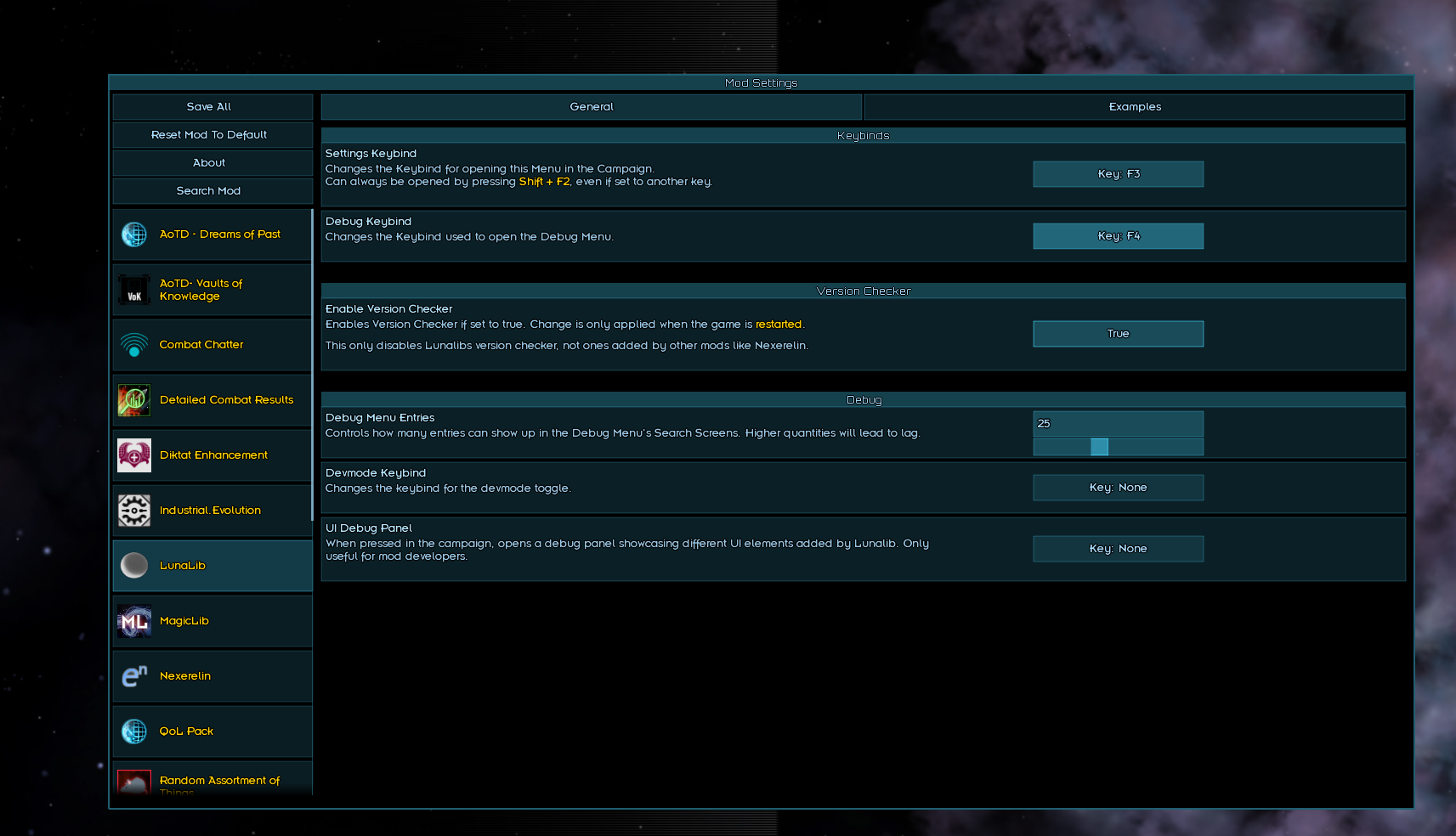 438 mods SAVE BEFOER EVERY BATTLE OR EVERY 30 MINUTES ============================= shove the common folder into your saves folder and take the settings.json and go put that in the starsector-core/data/config folder and replace if you plan on doing a whole modpack run. Without it the economy will be really stale but if you have a shitty computer dont use that settings file unless you like lag https://www.mediafire.com/file/ccgvf4rr5lmbn8d/common.rar/file