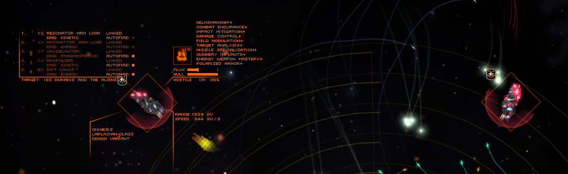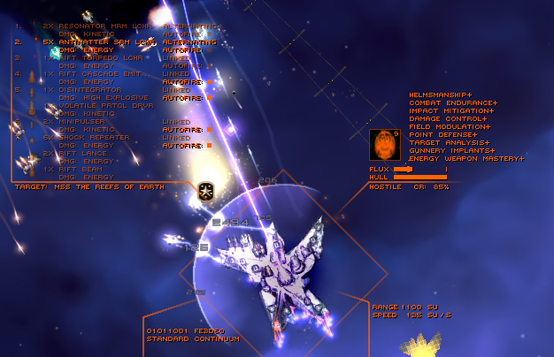 Слетал до Лимбо за границу карты, очень понравились большие лазеры за 5 демонских осколков - приличный урон, эффективно по факсу и вкусное перманентное ЭМП выключение всего (1000 ЭМП/сек, сучечьки) и расстояние поражения что называется "за пределами экрана" (ITU + advanced optics, да) но зачем через всю карту лететь чтобы их ещё пофармить если возле корки есть ещё одна красная херня с Абисс в названии, казалось бы, да? Спойлер: в итоге там внезапно не демонские красные фигни почему-то, а какие-то ультра-редактед. Автобоем зачищаются хоть пачкой цивилианов из числа суппорт кораблей (чтобы не снижать CR на боевых кораблях). При этом пошёл на два флота разом, автобоя нет, выставил боевые корабли наконец-то. Иииии...