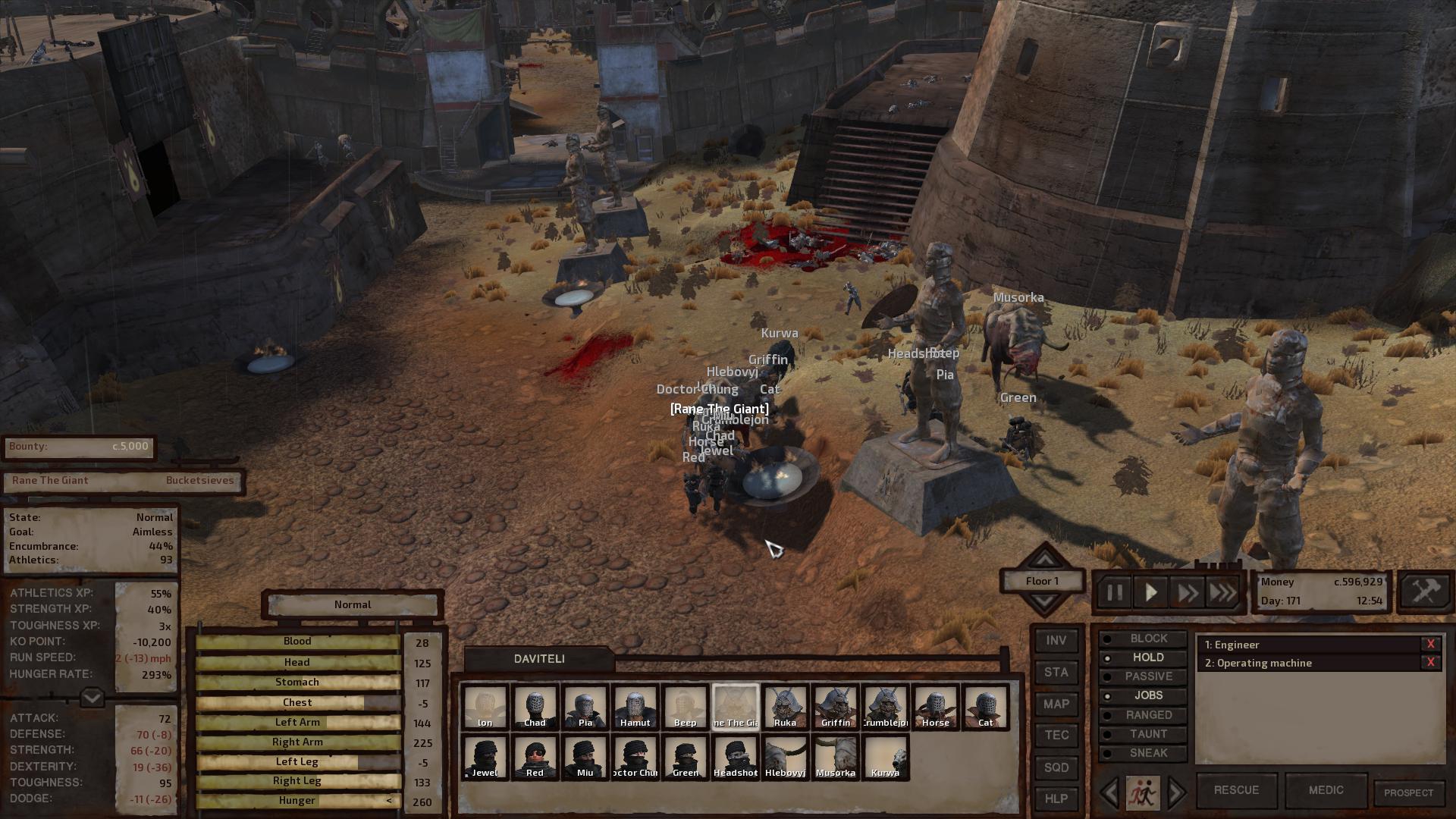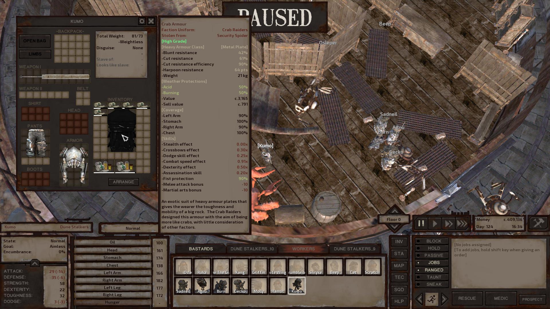 Проблема в том, что нужно очень долго-много гриндить статы чтобы выйти на приличный уровень. Плюс нужна броня (которая режет статы) иначе от ранений быстро ослабевают пешки. Это имеет смысл если у тебя полдюжины бойцов или около того. Если у тебя массовка, то проще всем выдать нейтральные Полеармы или Сабли с Дефенс бонусом и забыть про микроменеджмент. Обвёл рамкой, послал в бой, сам вручную расставляешь арбалетчиков.