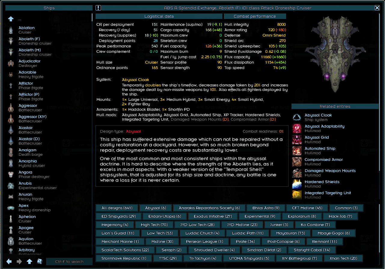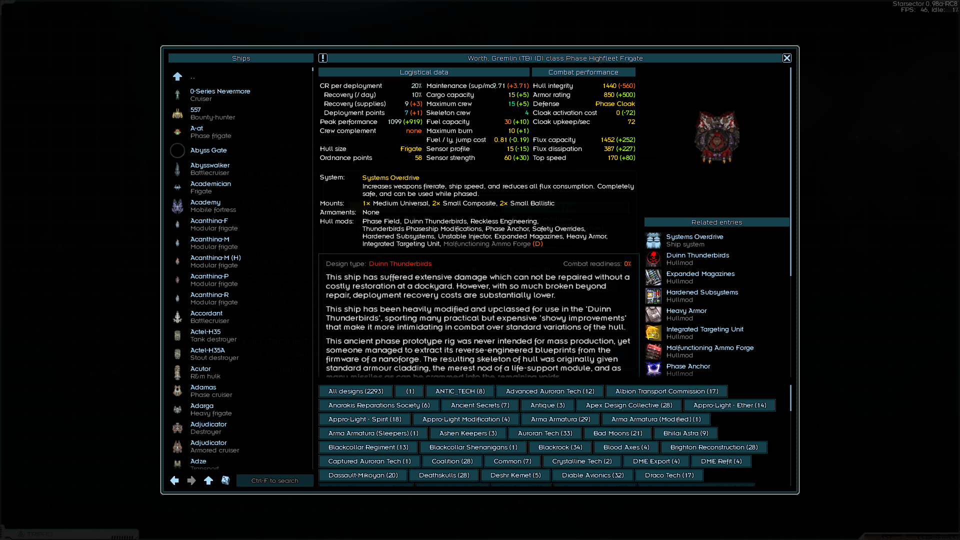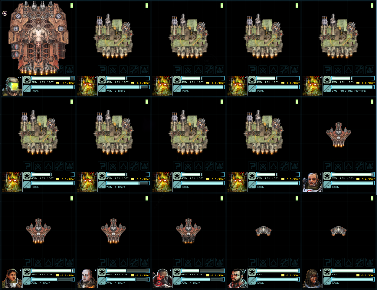 >>49810565 Зацени кораблики и вооружение из Джанк Ярд Догс, у них специализация как раз на таком + у их кораблей сравнительно маленький monthly maintenance и постоянно есть Salvage gantry так что с послебоевого распила вражеских остатков можно вполне жить припеваючи. А в случае мира у них бонусы к шахтёрским операциям (если ставить их лазеры и файтеры которые по лору и есть переделанное под военные нужды шахтёрское оборудование), можно висеть над мимо-астероидом и выходить более-менее в ноль по ежемесячным расходам на флот.