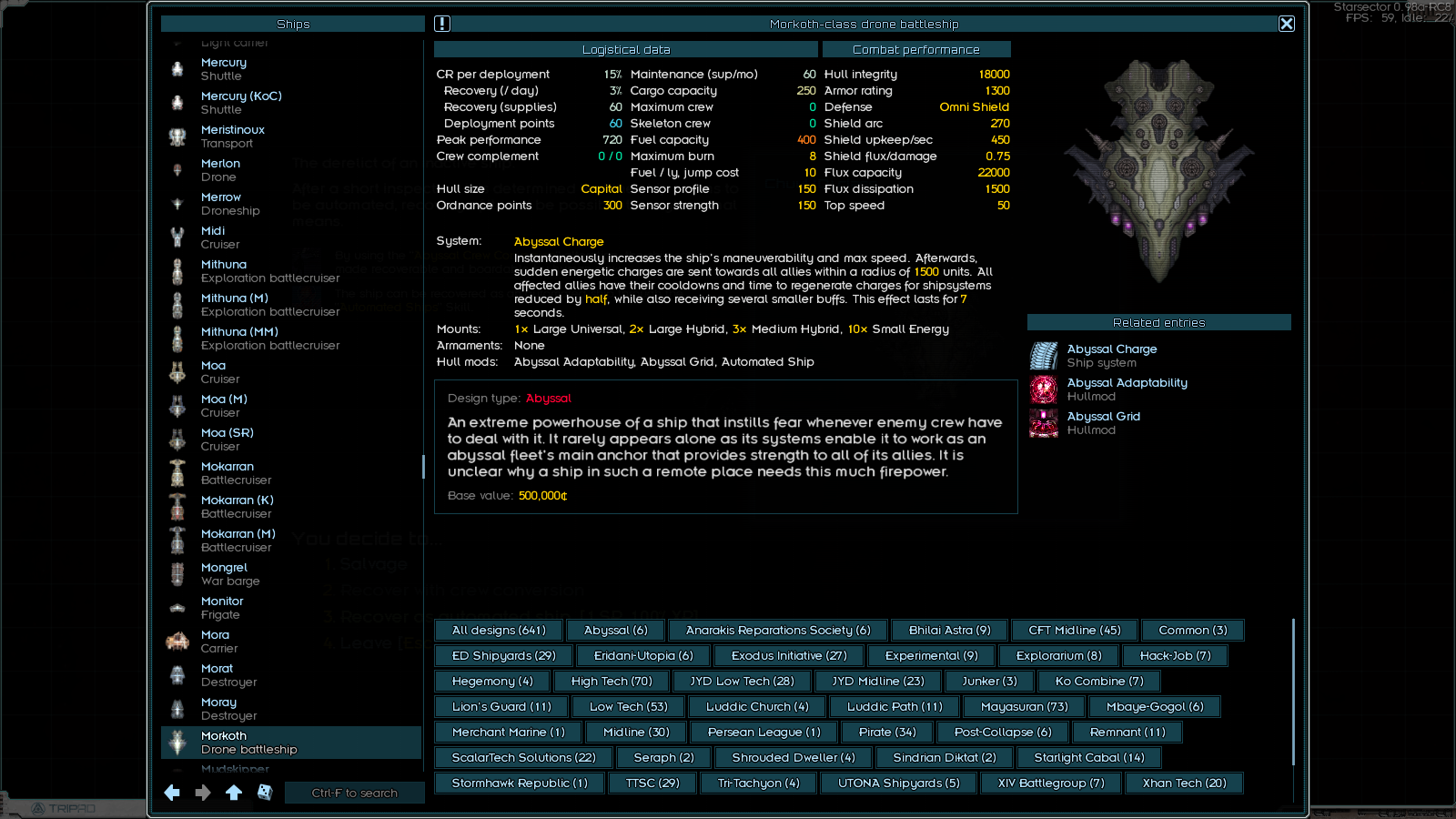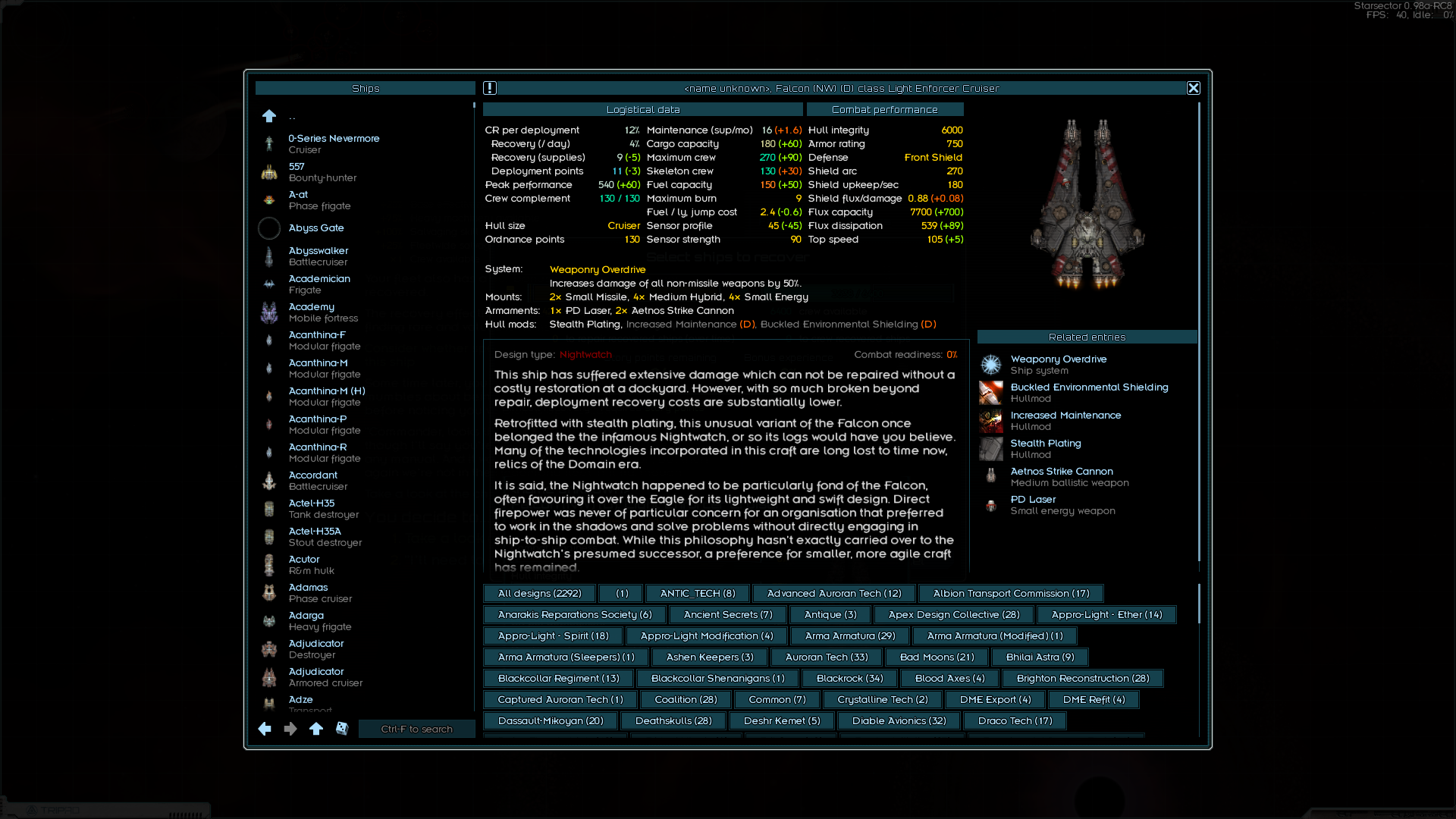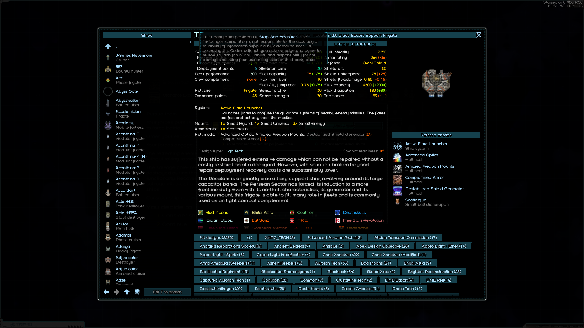 >>49810565 Зацени кораблики и вооружение из Джанк Ярд Догс, у них специализация как раз на таком + у их кораблей сравнительно маленький monthly maintenance и постоянно есть Salvage gantry так что с послебоевого распила вражеских остатков можно вполне жить припеваючи. А в случае мира у них бонусы к шахтёрским операциям (если ставить их лазеры и файтеры которые по лору и есть переделанное под военные нужды шахтёрское оборудование), можно висеть над мимо-астероидом и выходить более-менее в ноль по ежемесячным расходам на флот.