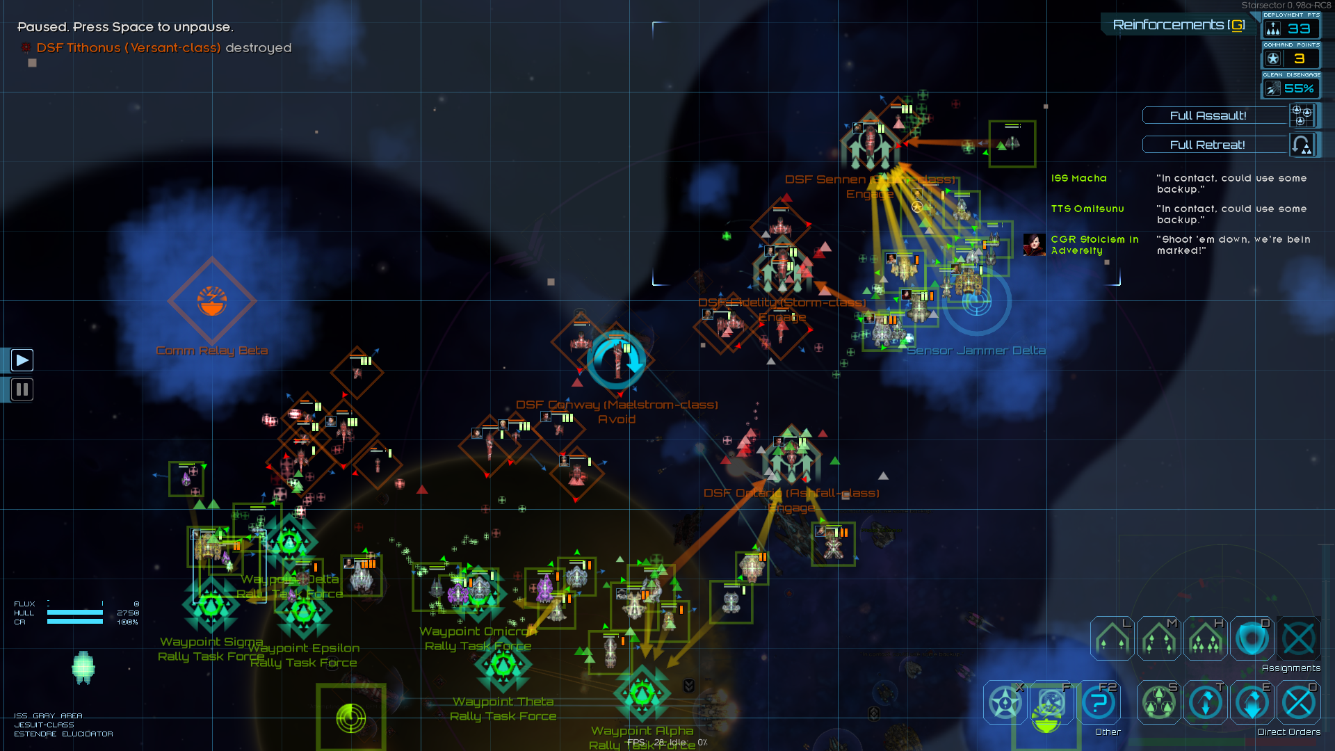 >>49861779 >А пик у кораблика всего 180с, а потом улетает со скоростью 150% из-за встроенной поломки. Вешай офицеру combat endurance, а кораблику hardened subsystems. Гиперион это телепортирующийся страйк с флангов, долго ему на поле битвы лучше не находится. Я когда их использую, то спускаю с цепи во время начала активного замеса, чтобы они протелепались за жопу вражескому флоту и с ионными пульсерами сделали грязное дело