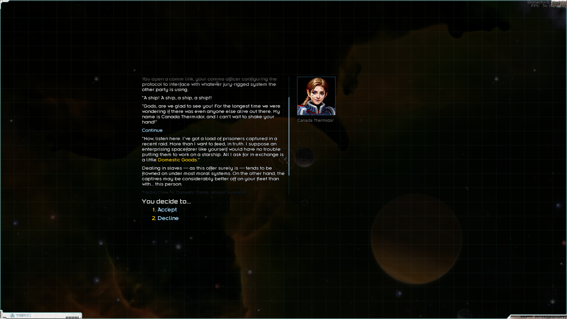 Блять помогите я когда-нибудь дойду до лейтгейма в секторе? Постоянно выходят несовместимые обновления блядских модов которые я хочу и приходится начинать заново. С другой стороны ерли гейм мне даже как-то больше нравится, потому что с получением колонии и прибыли, которая даже нексовский оброк гасит, как-то скучнее становится. Впервые встретил вери лоу контакт. Учитывая, что я рассматриваю только high и very high, и какой мусор предлагали медиумы, то что мог бы предложить very low блять? Попить пива за гаражами?
