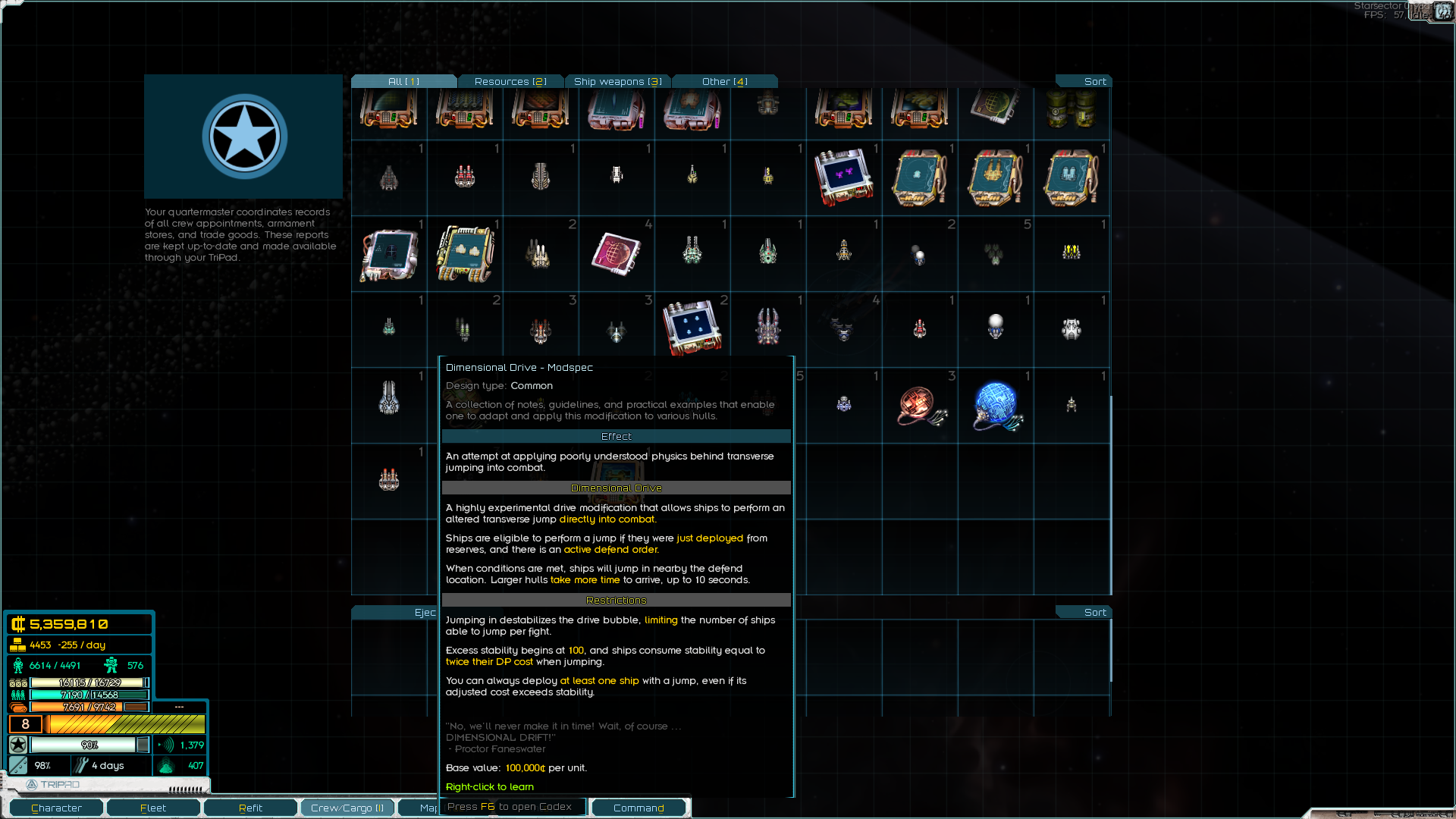 >>49855547 Release 1.0.0c - Fix ordnance point threshold stats not applying to industry skills - Update java version to 17 from 7 - Update game version to 0.98a from 0.97a - Update hull restoration min and max d-mod chance values to 0.75 and 0.90 respectively