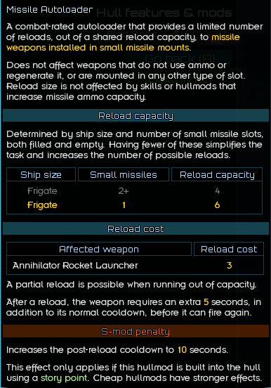 >>49852936 Ну и где? Не вижу ни слова о том, что перезаряжает он одну ракету за раз. Я наоборот всегда предполагал, что reload cost означает цену за всю группу, по аналогии с EMR, который удваивает сразу все ракеты на корабле.