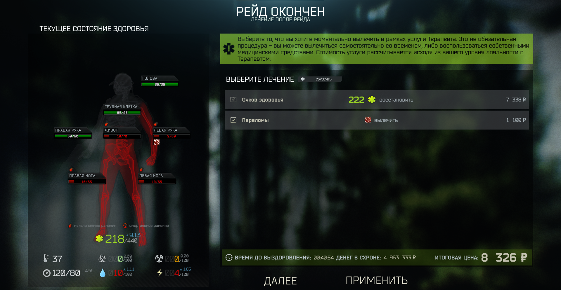 По эквипу. Броник 3 класса (выше бесполезно, если третий пробьют, то и четвёртый то же. А пятый - жирно) Но можно без него, но тогда откисать будешь чаще. Винтовка Горностай/Мосина(обрез)/м700 без глушителя с колиматором и лцу (по вкусу) Патрон - с ними жопа. Те что пробьют не шотнут в грудь, а те что шотнут не пробьют. Старайся вышибать голову. И молись что бы буба новые добавил новые патроны. Что колоть - если хочется, то обезболом можно вмазаться.