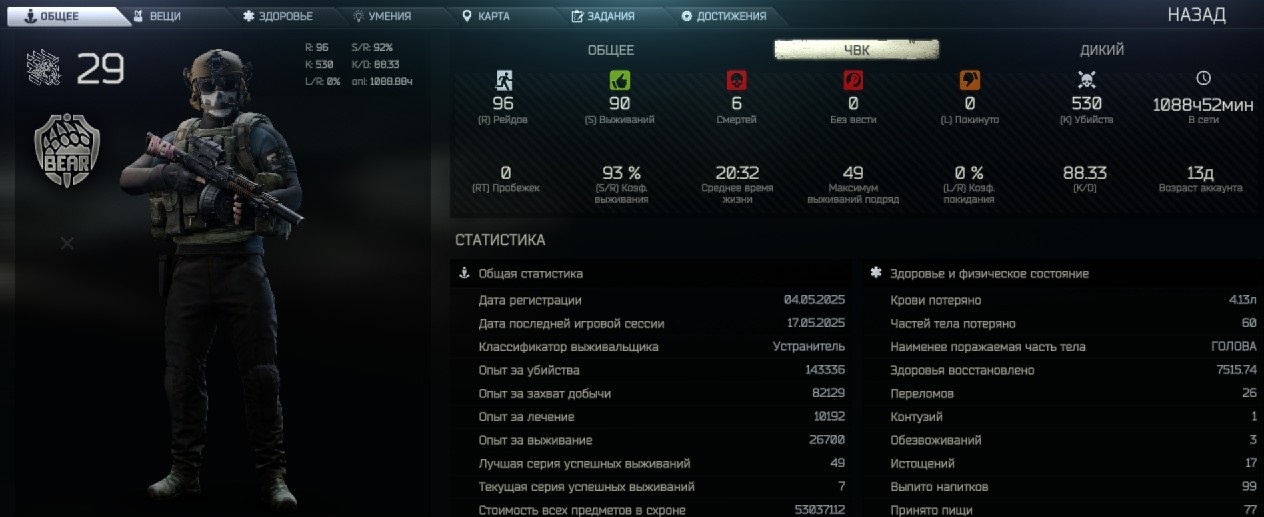 Найс поиграл. Грузит щас в меню пиздец как медленно, на барахолке ошибка 502. Последний раз заходил 22 апреля: барахольщик спиздил кэш за 6 пачек сахара, я забыл выключить генератор, а сектаноты принесли красную рукоять к АК, пачку молока и ключ к резерву какой-то дешевый.
