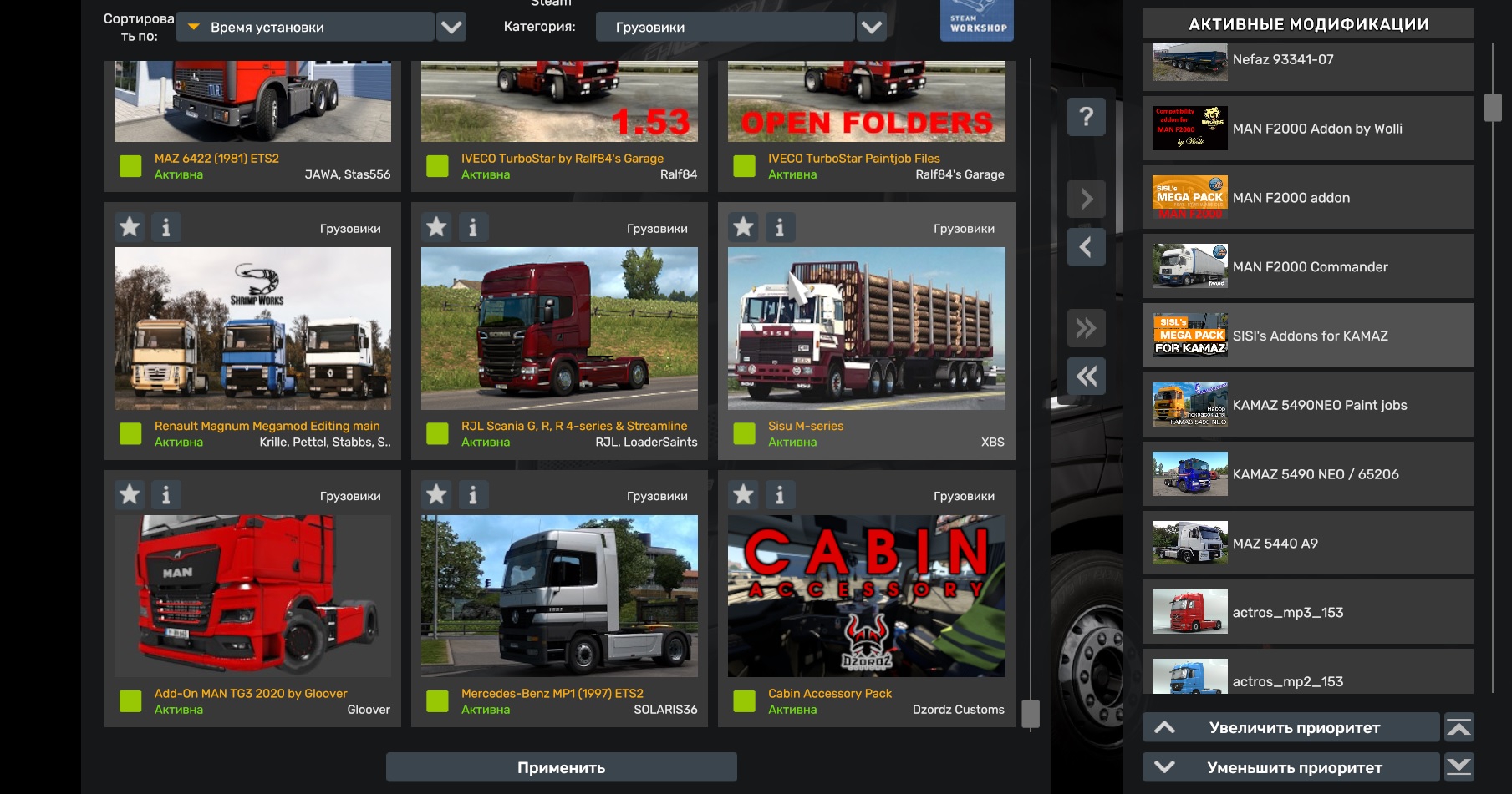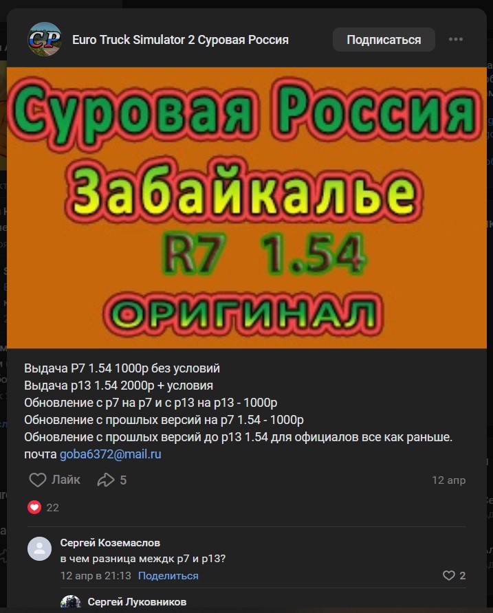 Алсо, на скринах совковое и китайское говно, на котором я бы даже ради прикола и при наличии качественных модов бы не поехал ЕТС давно стал симулятором современных тягачей, поэтому и сотрудничает вокруг новой техники и ею же народ привлекает, на старом говне, актуальном даже по меркам релиза игры в 2012-м, кататься мало кто уже хочет, ящики смерти из конца девяностых и нулевых интересны до первого маршрута, когда ты заебёшься смотреть на модельку гпс-трекера из 2006-го
