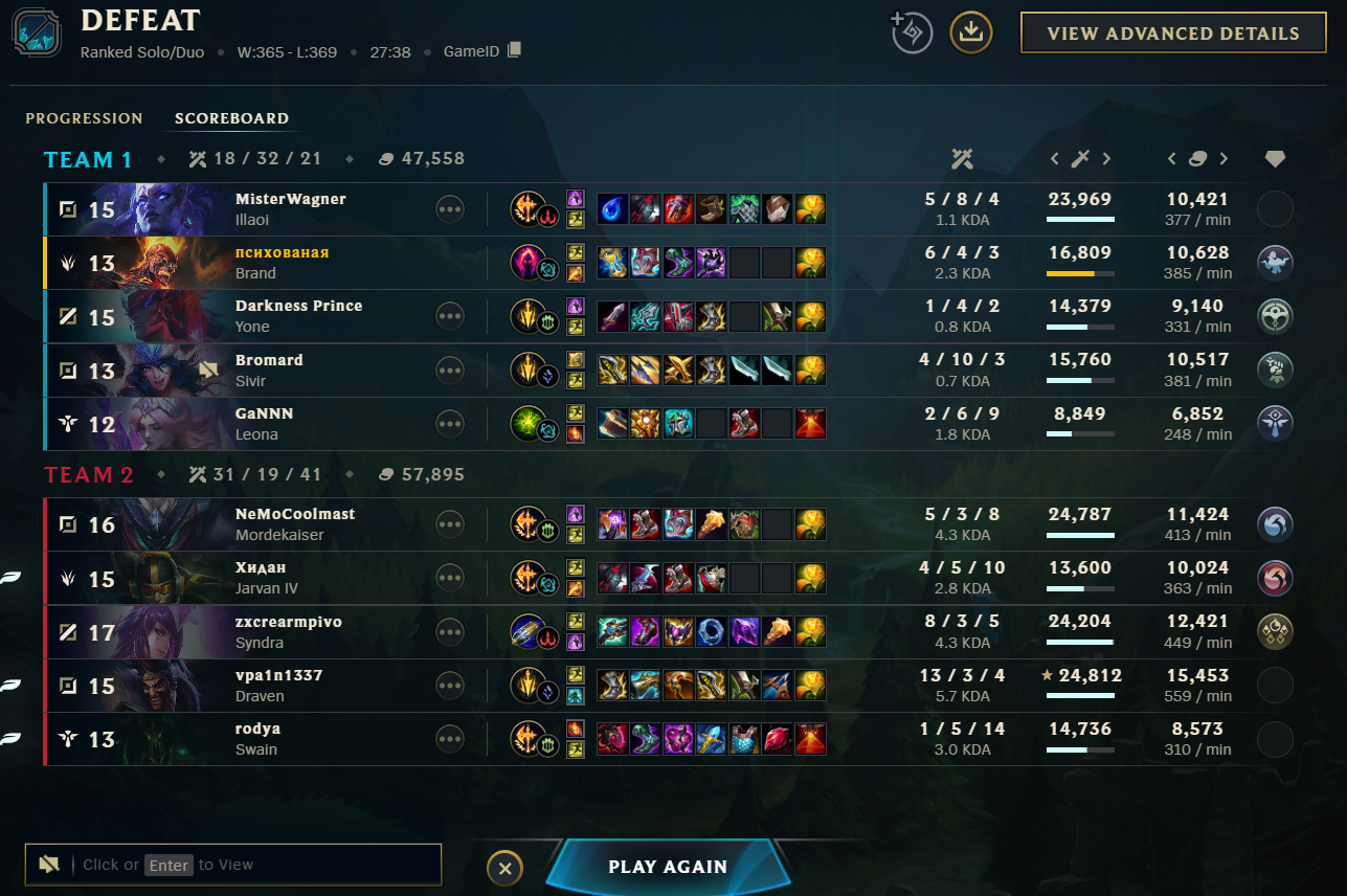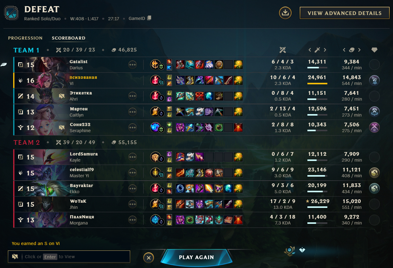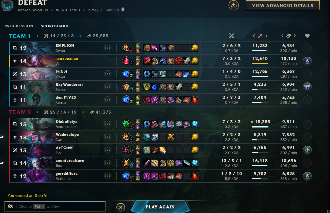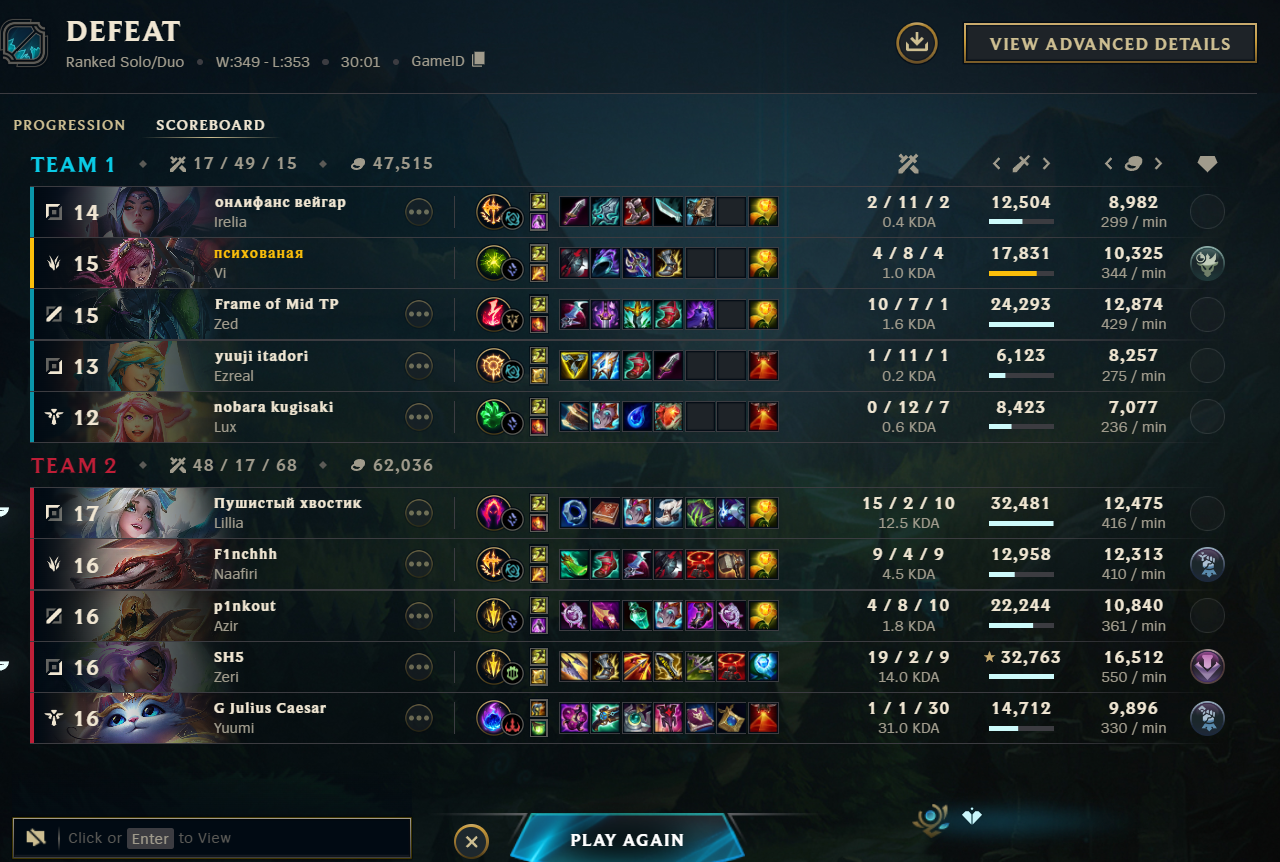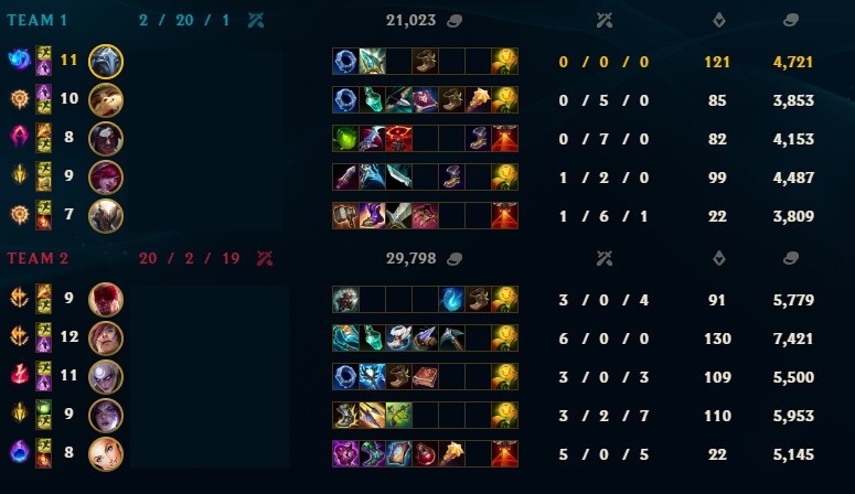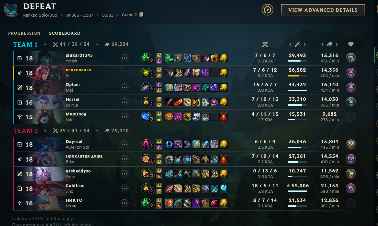 3 игры подряд кью диференс. Риот порешал за меня проигрываю я или нет, 0 импакта который я могу сделать. Делаешь импакт союзник его через 10 секунд выбрасывает в помойку. Или противники фидят как черти или союзники.