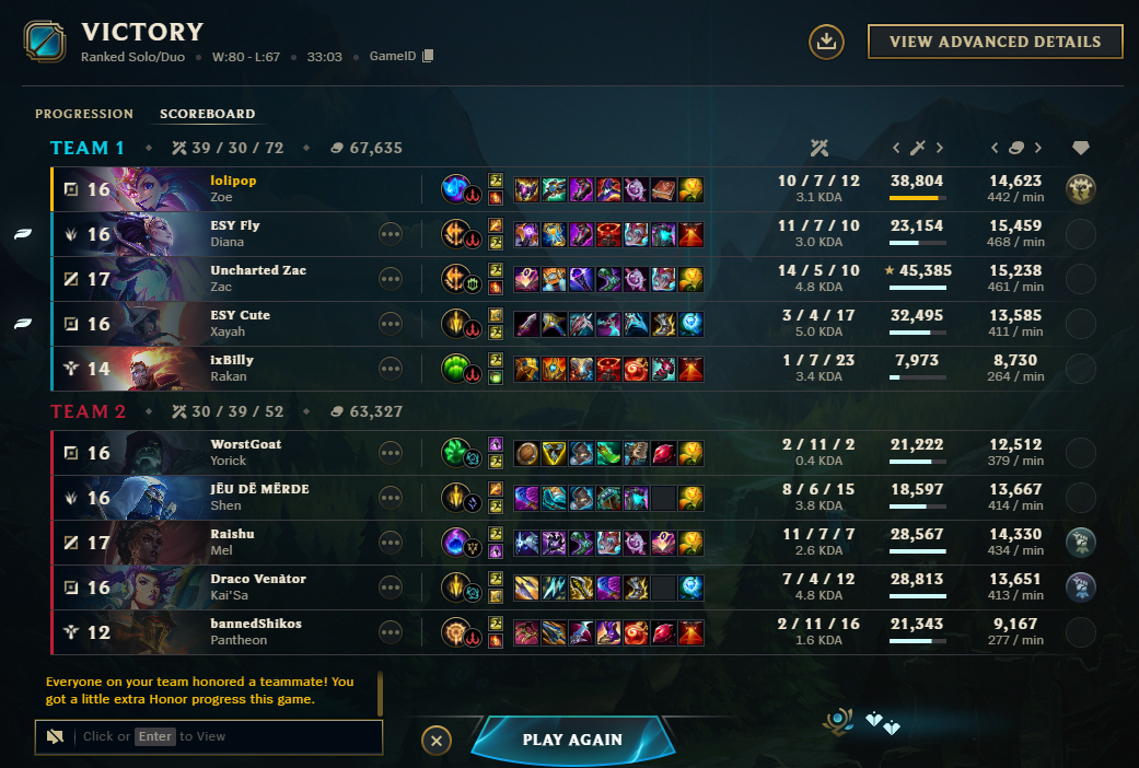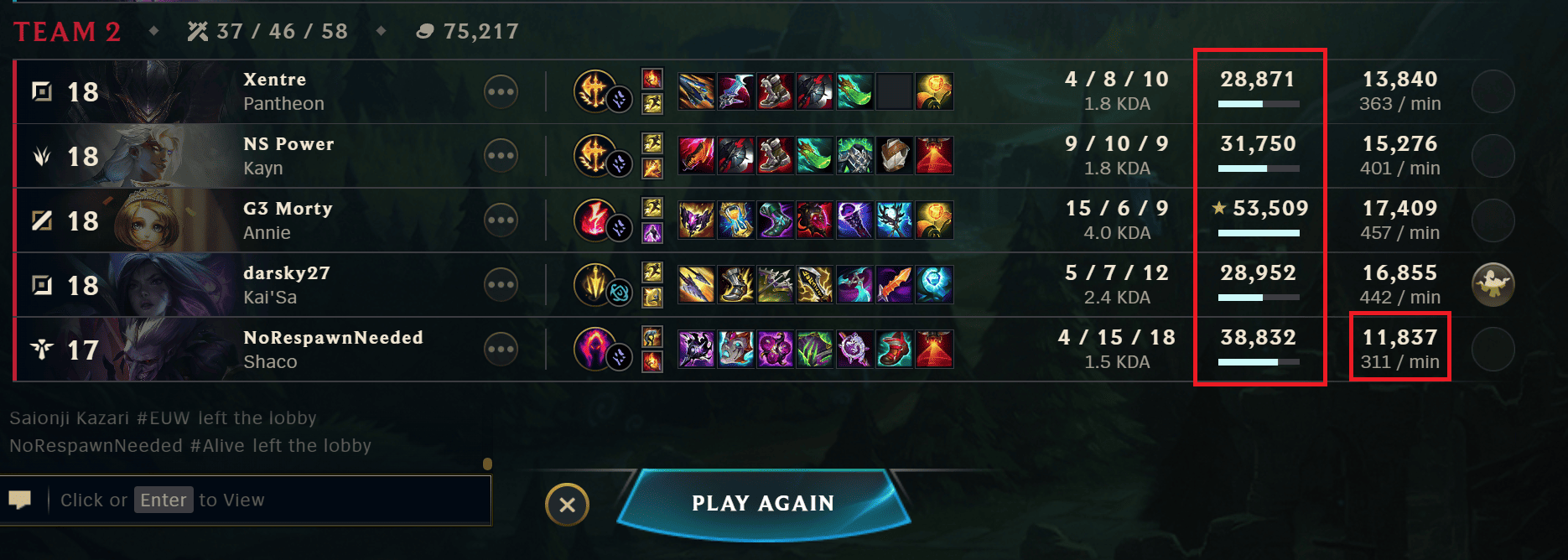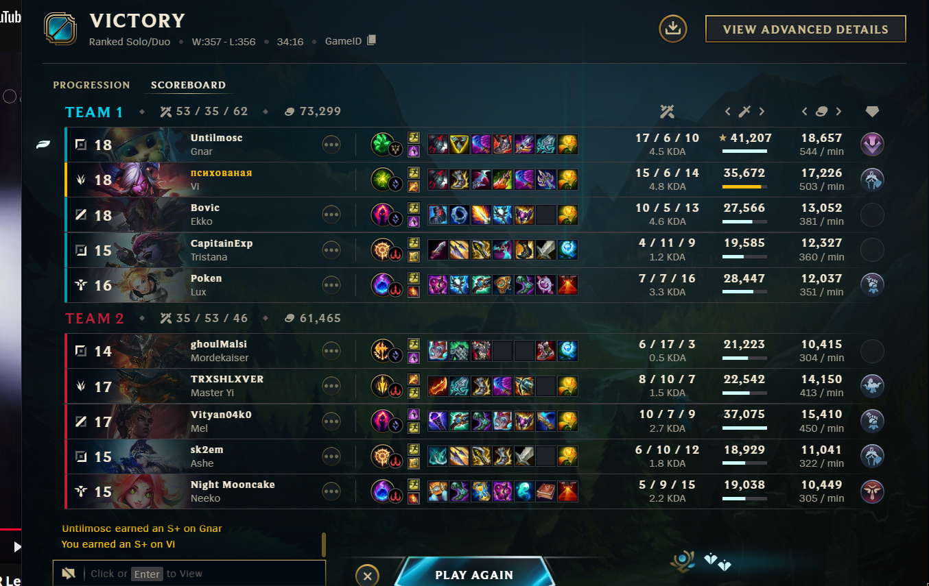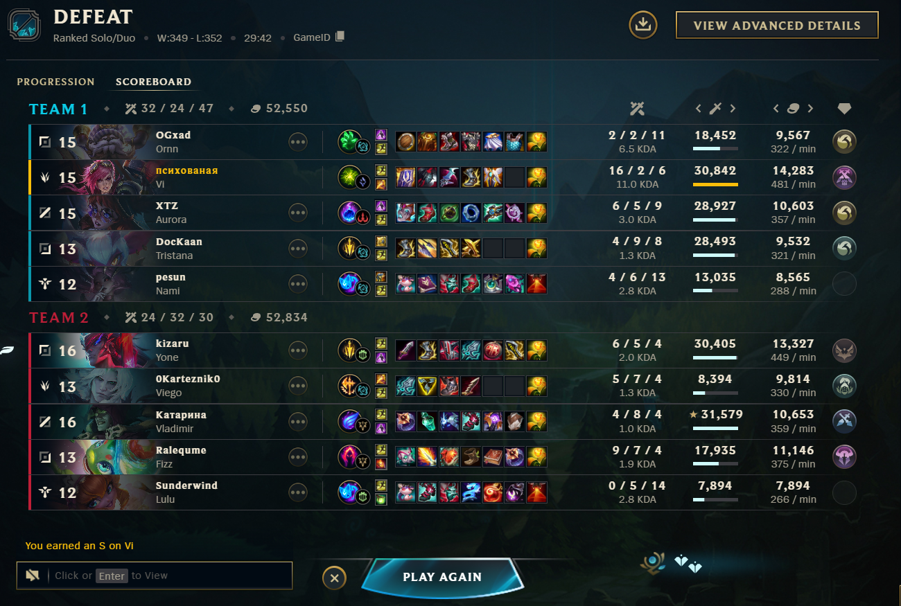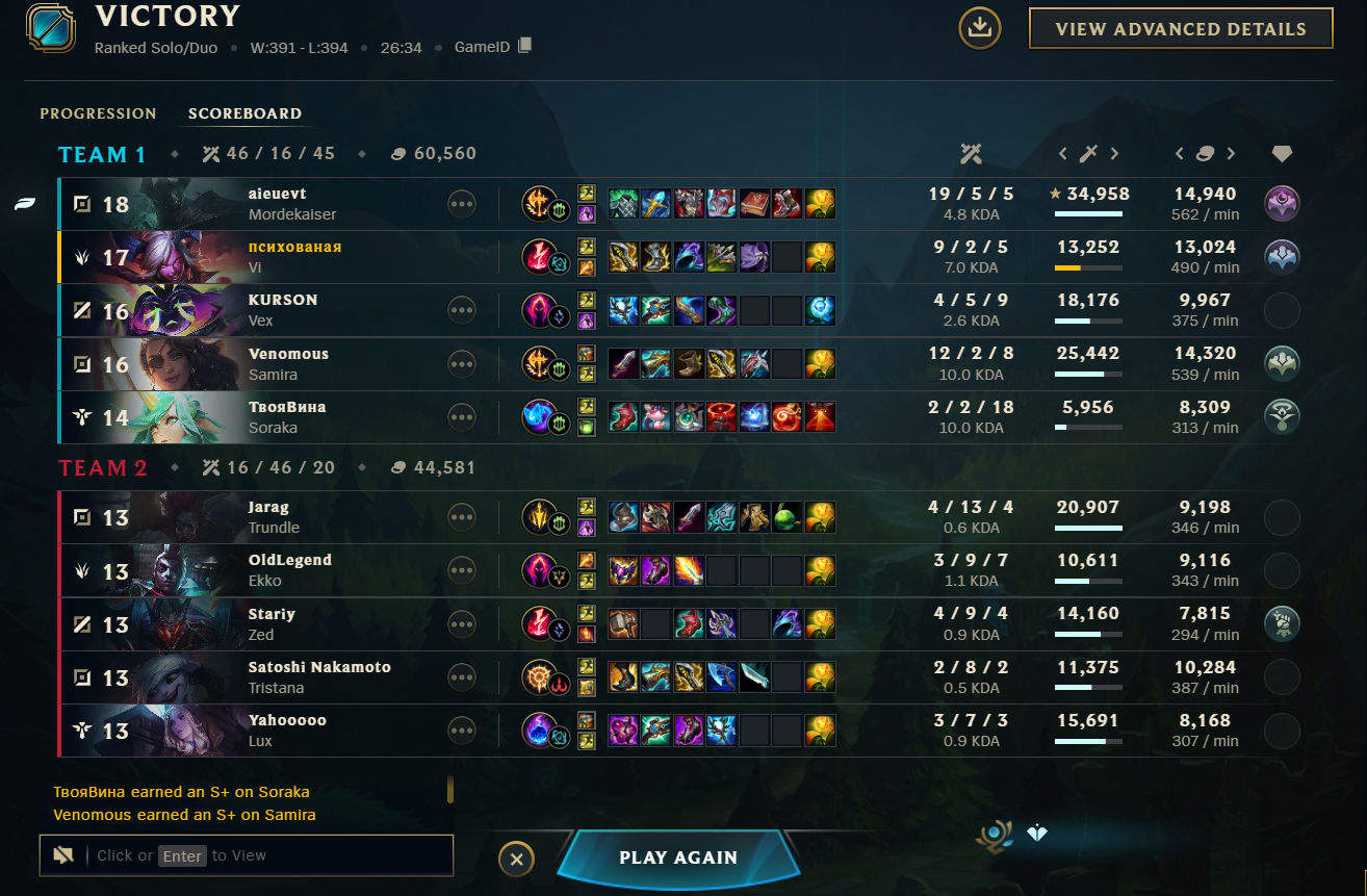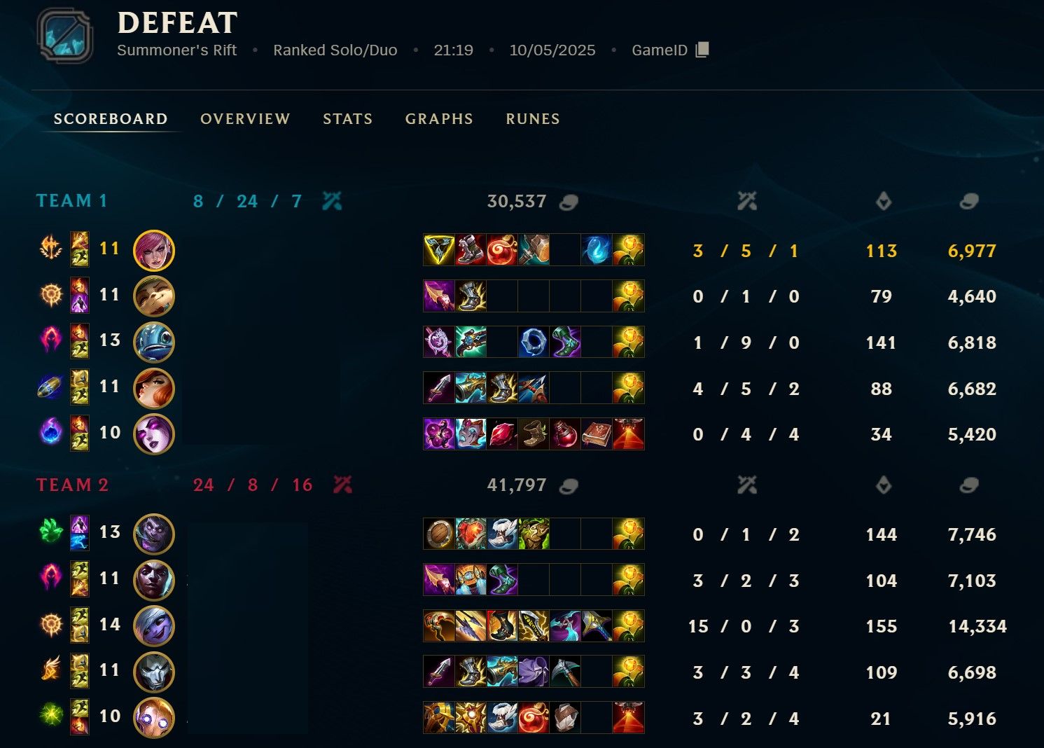3 игры подряд кью диференс. Риот порешал за меня проигрываю я или нет, 0 импакта который я могу сделать. Делаешь импакт союзник его через 10 секунд выбрасывает в помойку. Или противники фидят как черти или союзники.