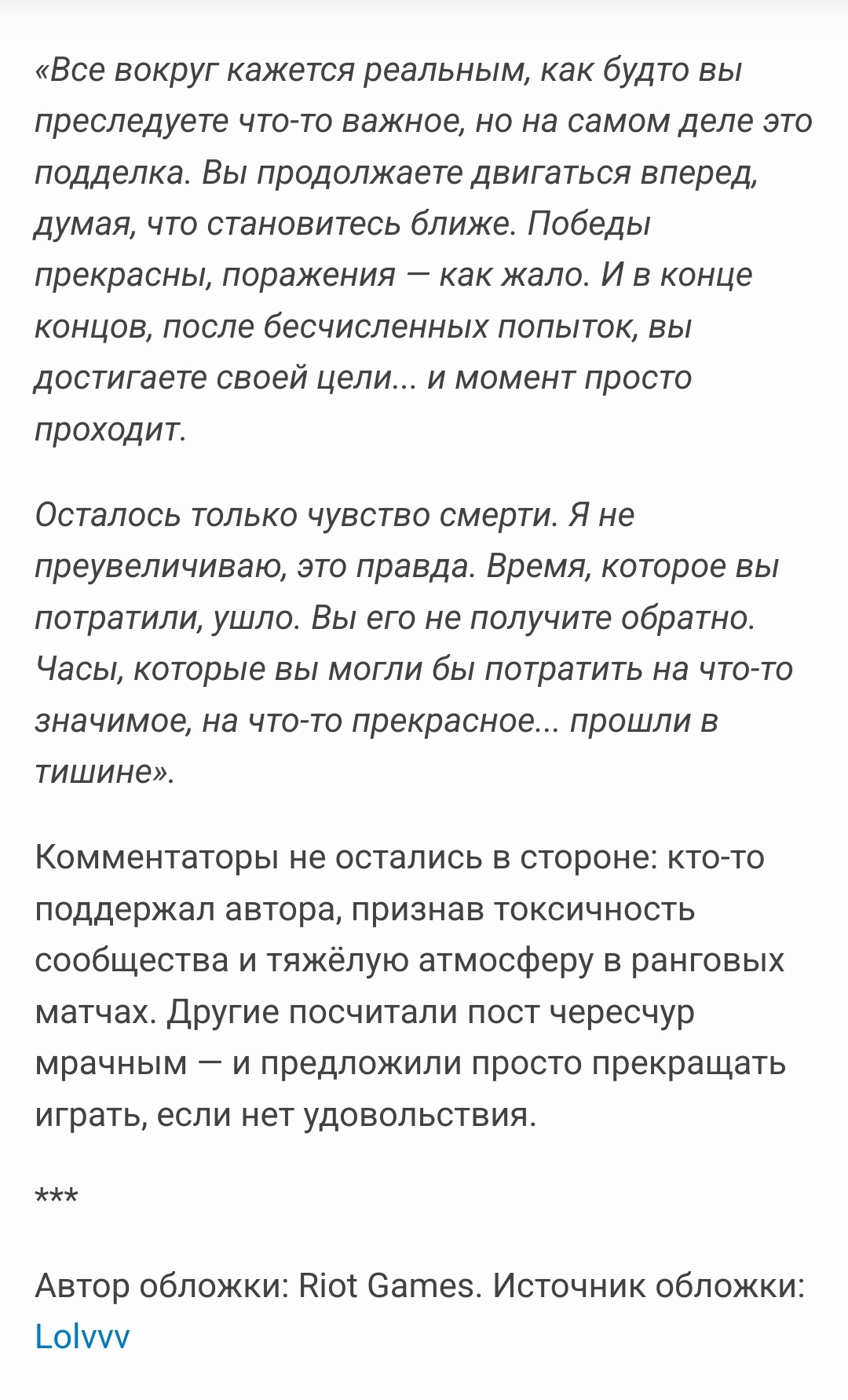 #### Вывод: LoL — это лотерея с элементами игры Да, в высоких рангах есть какая-то видимость стратегии. Но для 95% игроков LoL — это: ✅ Рандомные тиммейты ✅ Непредсказуемый баланс ✅ Токсичность на каждом шагу ✅ Бессмысленные изменения "ради меты"