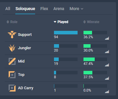 >>49791146 хз, вот я пока что играл на железе, бронзе и сильвере, у меня буквально всегда джангл был автофилл протектед кроме одного дня когда меня впервые закинуло на адк и я осознал что адк сложнейшая роль в игре