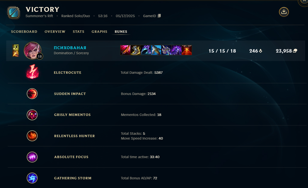 А вот так в 50 минут помоешной игре. Ну мне пока нравится билд. Он ошибок не прощает, а я ошибаюсь очень часто. С афтершоком гораздо легче играть. Афтершок настолько хорош что я на дивизион выше своего эла играл.