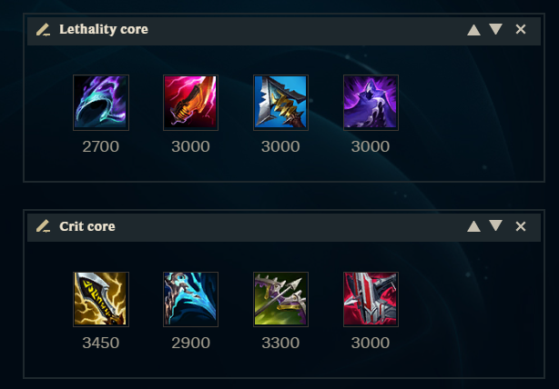 Steal his look. Леталити кор: собираем эту хуйню слева направо. Если нас фидят то собираем криткор слева направо. Если играем против сораки, то собираем 2 предмета из леталити кора, потом мортал ремайндер и потом ИЕ. А вот интересно получилось что коллектор оказался весьма опцинальным предметом. Все 4 предмета из крит кора лучше коллектора. Без ИЕ криты есть смысл собирать только если надо мортал ремайндер. Потому что одним слотом закрываем хилорез и арморпен. ИЕ можно собрать четвертым предметом безопасно потому что насрать какой у тебя четвертый предмет игра уже кончилась или затянулась.