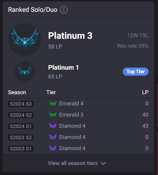 >>49783648 Я знаю это писать странно, но ты играешь не правильно. В ранкед надо заходить не потеть, а так-же по фану играть как в нормал, и забить на lp. В нем есть все плюсы нормала, и к тому же минусов меньше чем там же. Уже лет 5 катаю онли ранкеды, чисто под пивас.