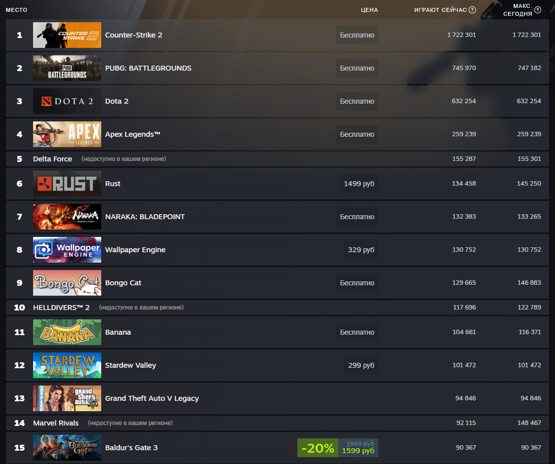 ложки кала нет даже в топ 15 игр стима тут обсуждать нечего с шизоидом мертвая параша куда там с огижем тягаться и тем более кс все данные есть в открытом доступе