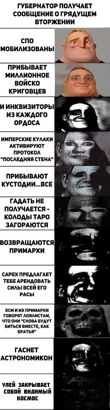 Зашел на ваховику почитать про Тразина и струганул провалив чек на стойкость >Инквизитор Валерия возглавила оперативную группу для расследования обстоятельств и открыла мириады чудес в обширных галереях Тразина. Однако, когда поражённые увиденным незваные гости углубились в недра планеты, гробница ожила. Последовавшая битва вызвала беспорядок и привела к уничтожению нескольких особо ценимых Тразином экспонатов, что вынудило его вмешаться лично. В кульминационный момент сражения Валерия убила смотрителя музея выстрелом из гравитонного излучателя, но уже через несколько мгновений владыка снова появился из теней, целый и невредимый. В конечном итоге остатки группы спаслись, отступив к шаттлам и оставив Солемнейс хранить свои тайны и дальше. Тразин увидел в инквизиторе родственную душу и впоследствии отправил ей гиперкаменный ларец, представляющий собой тессерактовую ловушку. Каким-то образом Валерии удалось избежать её и даже научиться пользоваться ею в качестве межмерной тюрьмы, куда она ссылала врагов Вы че ебу дали, какая нахуй родственная душа между сверхмогущественным существом возрастом >60 миллионов лет и ебаной смертной пиздой очереднярой, это даже не отношение эльдаров к монкеям а хуй знает, как если бы человек увидал родственную душу в микробе из-под ободка унитаза. Ультражирушная писанина