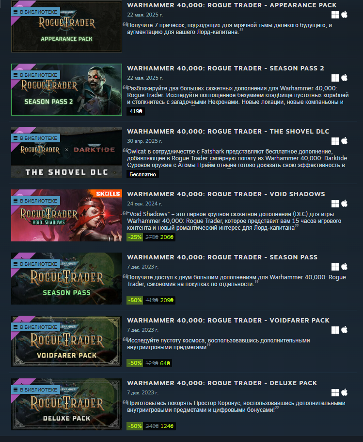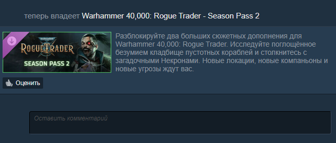 Warhammer 40000: Rogue Trader Новая crpg от совокотов, в этот раз по вселенной Warhammer 40k. Возьмите на себя роль Вольного Торговца, Лорд-Капитана огромного корабля, и унаследуйте великую реликвию своего рода — Патент Вольного Торговца, подписанный лично Императором. Патент дает невероятную власть и почти полную неуязвимость от законов Империума. Совершайте сделки с ксеносами и пиратами, управляйте полностью подчиненными вам колониями и прокладывайте в варпе пути в такие места, о которых другие боятся и думать. Пройдите путь Догматика, верно следующего Истинам Императора… И постарайтесь не превратится в сумасшедшего палача миллионов. Или станьте Схизматиком, что сможет найти компромисс даже в самых странных и тяжелых ситуациях. Принесите хоть каплю надежды в темный мир далекого будущего… И узнайте, к чему может привести «излишнее милосердие». Или станьте Еретиком и настойчиво объясните всем проклятым, что им не удастся повергнуть сектор Коронус в пучины мрака. Потому что это сделаете вы! А затем на своей шкуре ощутите, как Четверка обращается с наскучившими им игрушками. Ломающих игру багов уже (почти) нет, а баланса нет и не будет. Купить(EGS, Стим, ключ для Стима): https://shop.buka.ru/item/Warhammer_40_000_Rogue_Trader Скачать: https://rutracker.org/forum/viewtopic.php?t=6293603