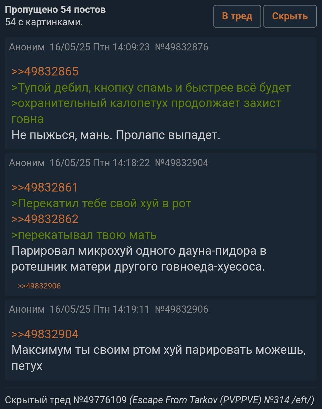 >>49832861 >Перекатил тебе свой хуй в рот >>49832862 >перекатывал твою мать Парировал микрохуй одного дауна-пидора в ротешник матери другого говноеда-хуесоса.