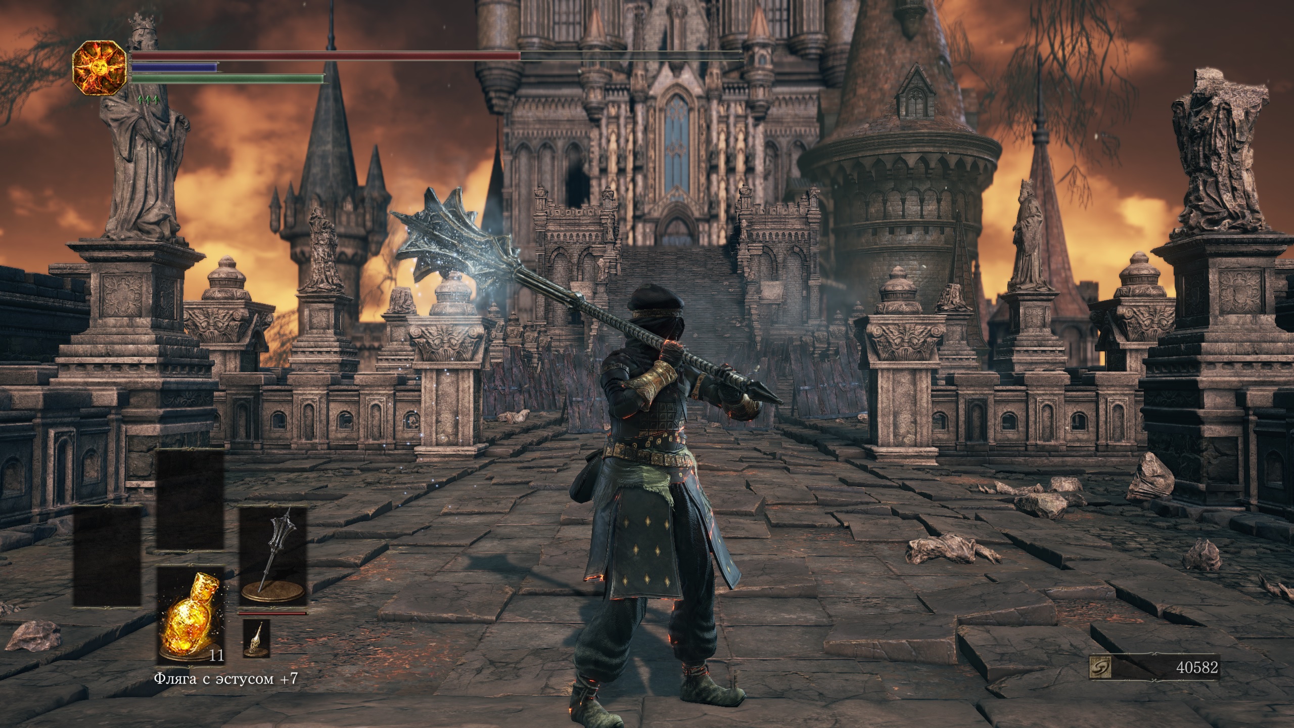 Прошел отца Гаскойна и думаю это хорошее место закончить тестовый свой забег и дропнуть игру до лучших времен.