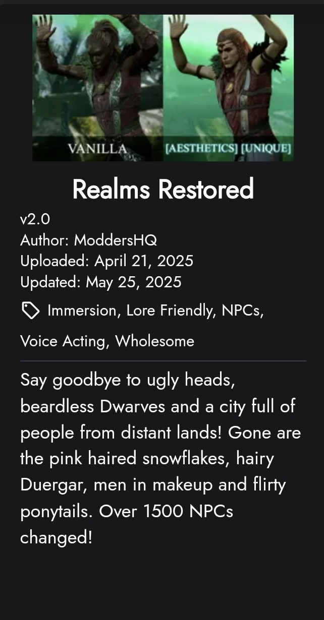 >>49872484 Какая-то лютая хуйня, судя по третьему скрину. Че, все неписи становятся хуманами? Бля, ебаный пиздец. И неканон - балда именно что мегаполис в котором челиков любых рас можно встретить. Хотя мне в целом кажется, что повесточка в бг3 настолько беззубая, что ущемляться с неё это уже диагноз.