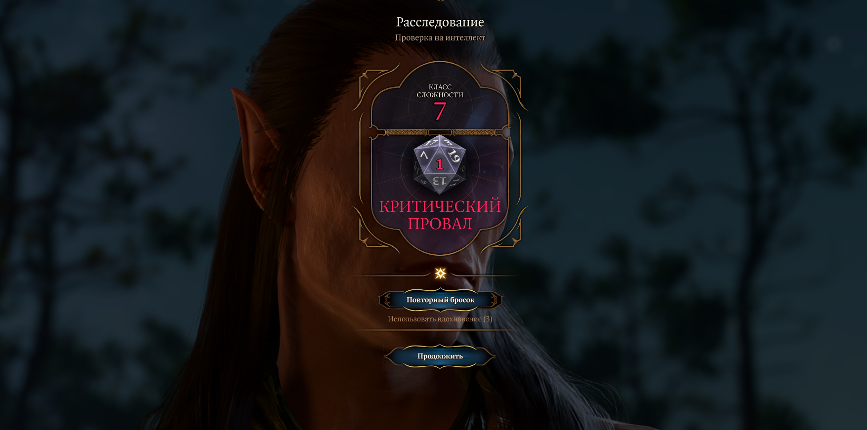 В игре никак не реализованы критические промахи во время броска кубов? Ты просто автоматически проваливаешь проверку и всё, как в настолке дополнительного пиздеца не случится? Мне кажется хотя бы в диалогах, хотя бы в некоторых могли и прикрутить доп опции на случай единички...