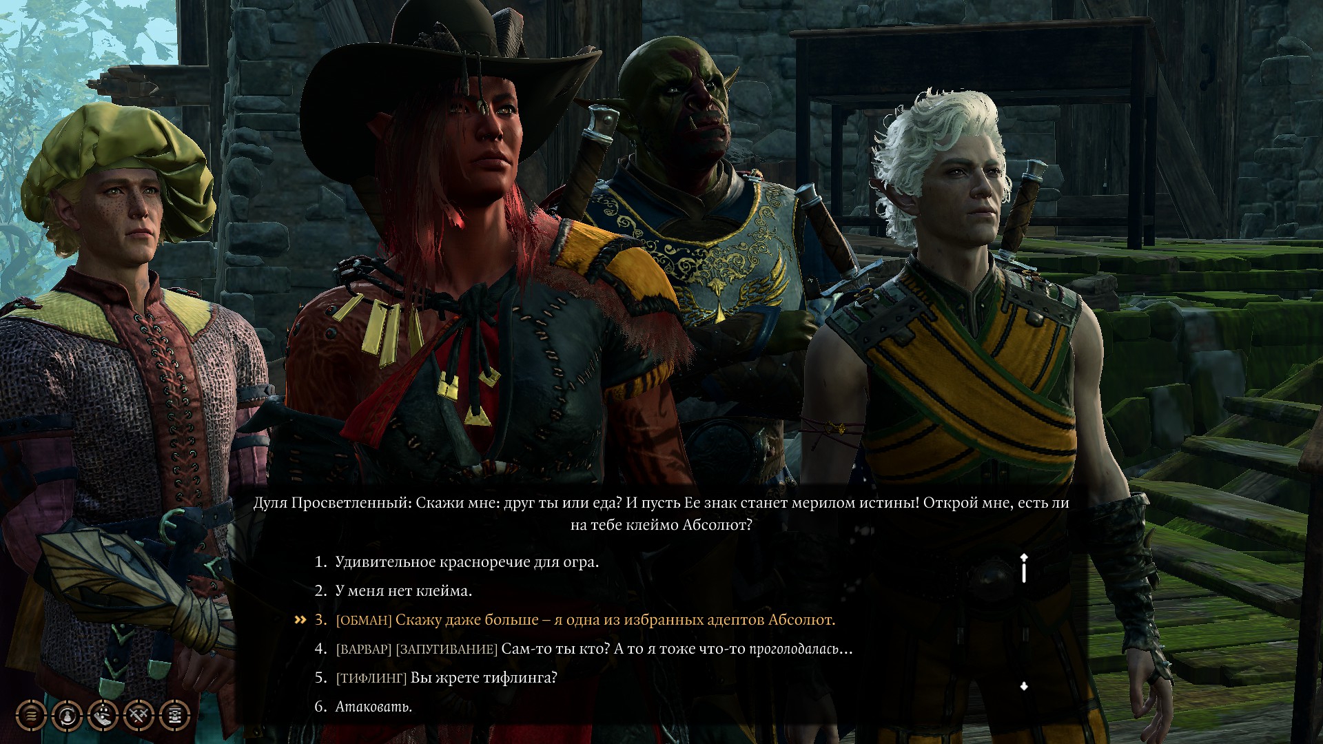 >>49883901 Пиздец хуйня, впервые за два акта мне бомбануло от сюжета. По мелочи мне еще бомбило от бесполезности тифлингов, но им можно хоть напоминать, что они долбоёбы, и слать нахуй. А тут даже нет реплики сказать "ээ, пизда тупая, если б не батя, ты бы в землюшке гнила, а твоя крылатая ковырялка тут пиздит на него еще, уйди в монастырь и задумайся о жизненных приоритетах".