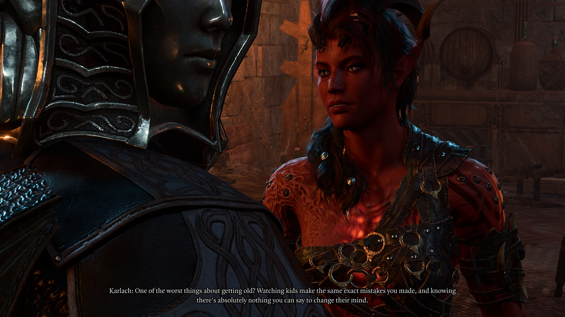 Ну кстати 10 не 10, а после 3 кукуха ещё +- на месте в основном, судя потому что я вижу. Все же человек ко всему привыкает, даже если он тифлинг.... Но конечно чуть больше сцен срыва, как с паладинами и Горташем, или там травматизации, где глаза стекленеют и она не хочет говорить или как-то дергано переводит тему и улыбается при этом, вообще бы не помешали