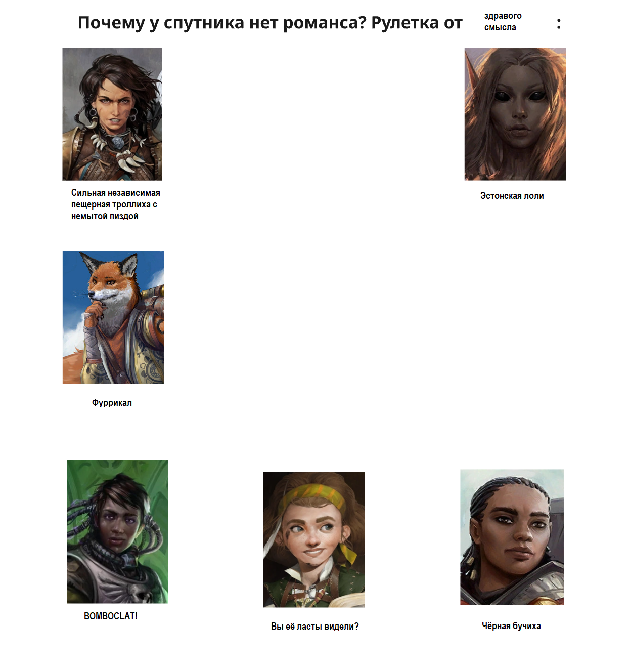 >>49949573 И правда тупой. Там для абузов просто достаточно уметь читать буквы. Потому что вся игра один большой абуз. У тебя напрочь поломаны: Кибелла, Идира, Кассия, Аргента. При минимальном вложении гг и с чуть большим все остальные.
