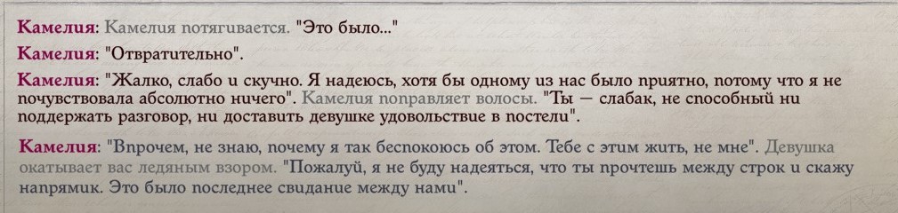 >Ну иди контракт заключи, или чем ты там собрался не тратить время. Почему твой кругозор заканчивается контрактом? Есть прокачка ирл навыков, есть ирл романсы. Ты совсем в ирлигейме застрял? Первые 2 акта интересные, спору нет, но чем дальше, тем больше возможностей будет. Главное не сидеть на базе и не скипать дни.