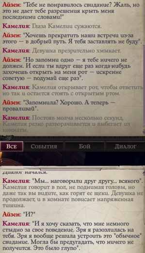 >Девушка вздрагивает, но не отдёргивает руку. Она сжимает вашу ладонь своими сухими горячими пальцами. >"Я верю тебе. Ты должен быть реален — я не хочу думать о мире, где это не так".