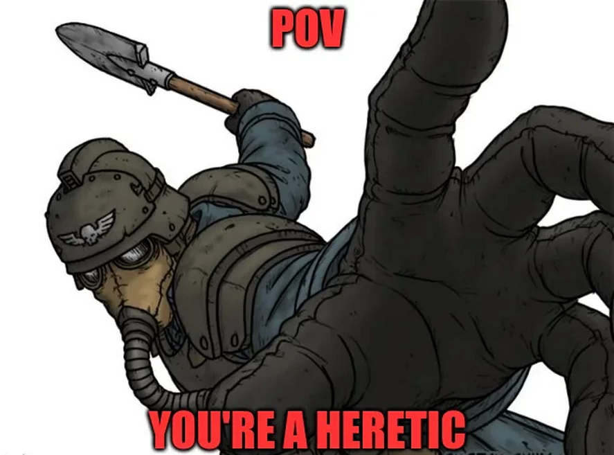 >>49950481 Не насколько. Самый кринжовый путь, ибо ты открытый еретик в группе с сестрой битвы и дознавателем инквизиции, а не еретик который притворяется догматиком.