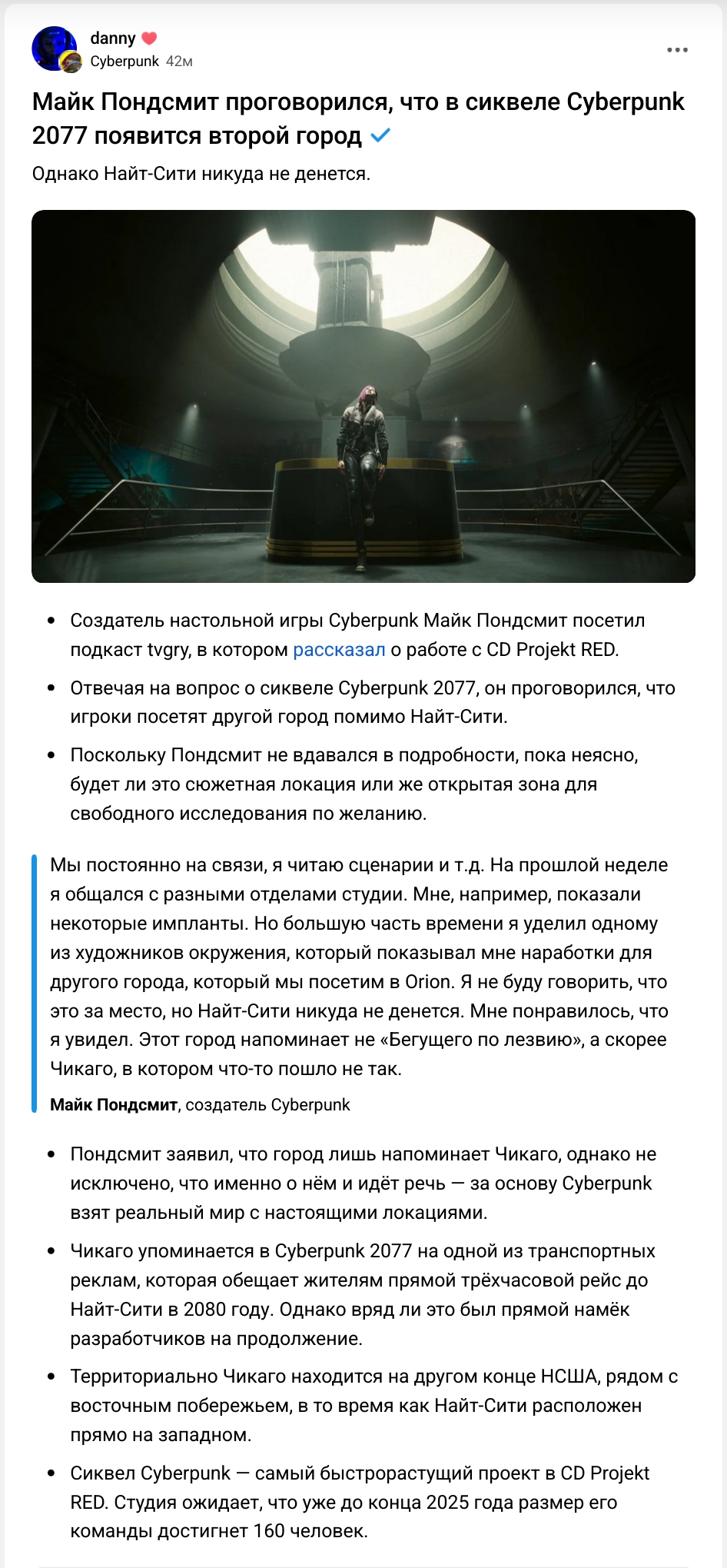 Вернулся в Найт-Сити спустя 2 года. Прошел весь контент, и знаете что я для себя понял. Насколько же тут охуенное звуковое сопровождение по части всего что касается эмбиента, из запоминающихся тем - Ханако и Ёринобу, трек из концовки Панам, и тема которая играет в погружении в Лагуну Бенд. Треки просто идеально вписываются в ситуацию и атмосферу, думаю что то похожее я слышал только в сериях Deus Ex. А месиво в Orbital Air из ДЛС под ебущее техно долбят голову просто кайф. Охуел от того что один из композиторов некий Paul Leonard-Morgan писал музыку для вина под названием Limitless (Область Тьмы). И это не просто музычка на фоне, а реально хороший OST который запоминается вместе с фильмом. Какие же СДПР молодцы все таки. Давно такого не было, что после прохождения игры сильно расстраивался, жаль что конторки не срут играми как раньше, и винов приходится ждать по 5-10 лет.