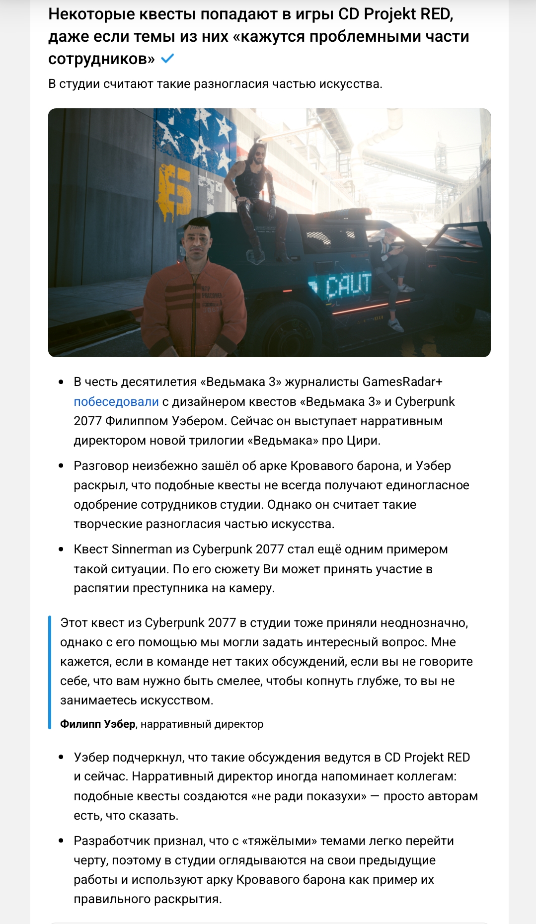 Только недавно впервые прошёл ваш киберпанк2077, т.к видюха нормальная появилась, пока без дополнения. Чёт бессмысленные выборы в игре. Всегда между какими-то АУЕ маргиналами из банд с улицы и нормальными цивилизованными структурами. Всегда было очевидно кого выбирать. Я мож чё не понимаю, хз.