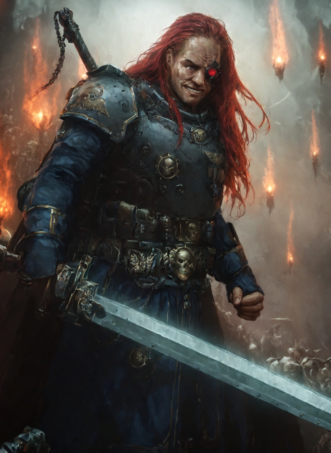 >>49954623 Начинал-то он не как еретик, был нормальным командиром Астра Милитарум, пока его пидорский мастер шепотов не полоснул оскверненным кинжалом, тот-то и понеслось. >>49954619 Сначала через grok сделал заготовку, она выглядела как пикрелейтед. Потом через civitai экспериментировал. Промт был примерно: huge man in light armor, red hair, long hair, red and black armor, augmetic, warhammer 40000 style, power sword with blue lighting energy, fire, future, augmetic, rage, evil smile with teeth and frown, thick stubble, oil paint, paintings, portrait, masterpiece, best quality, amazing quality, best aesthetic, great detail, high quality >>49954624 Да я решил с выходом каждого нового длс перепроходить. Просто хочется это делать когда уже не будет багов жопных, чтобы можно было нормально пройтию