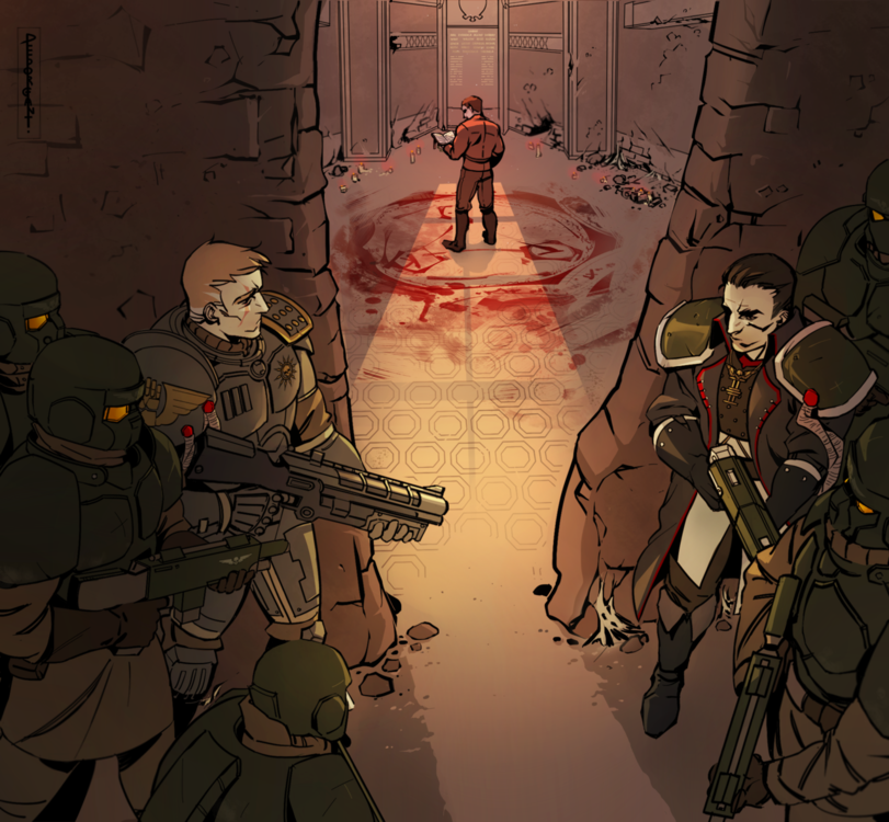 Хочется прям отбитую догма пати из абеляра, арженты, хейнрикса (только пизды ему дать сначала за то, что сует пальцы куда не следует праведному гражданину империума) и, собственно, собачника. Может паскаля ещё добавить.