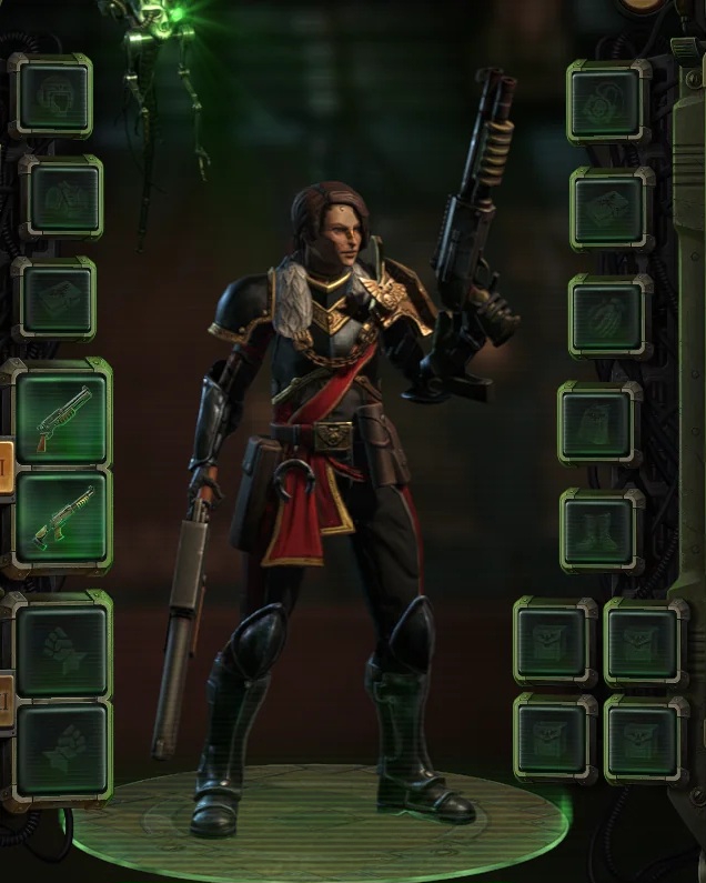Портрет однозначно должен быть в одежде без символики Империума, а оружие должно быть друкарским, либо радужным если ты уже проходил игру.