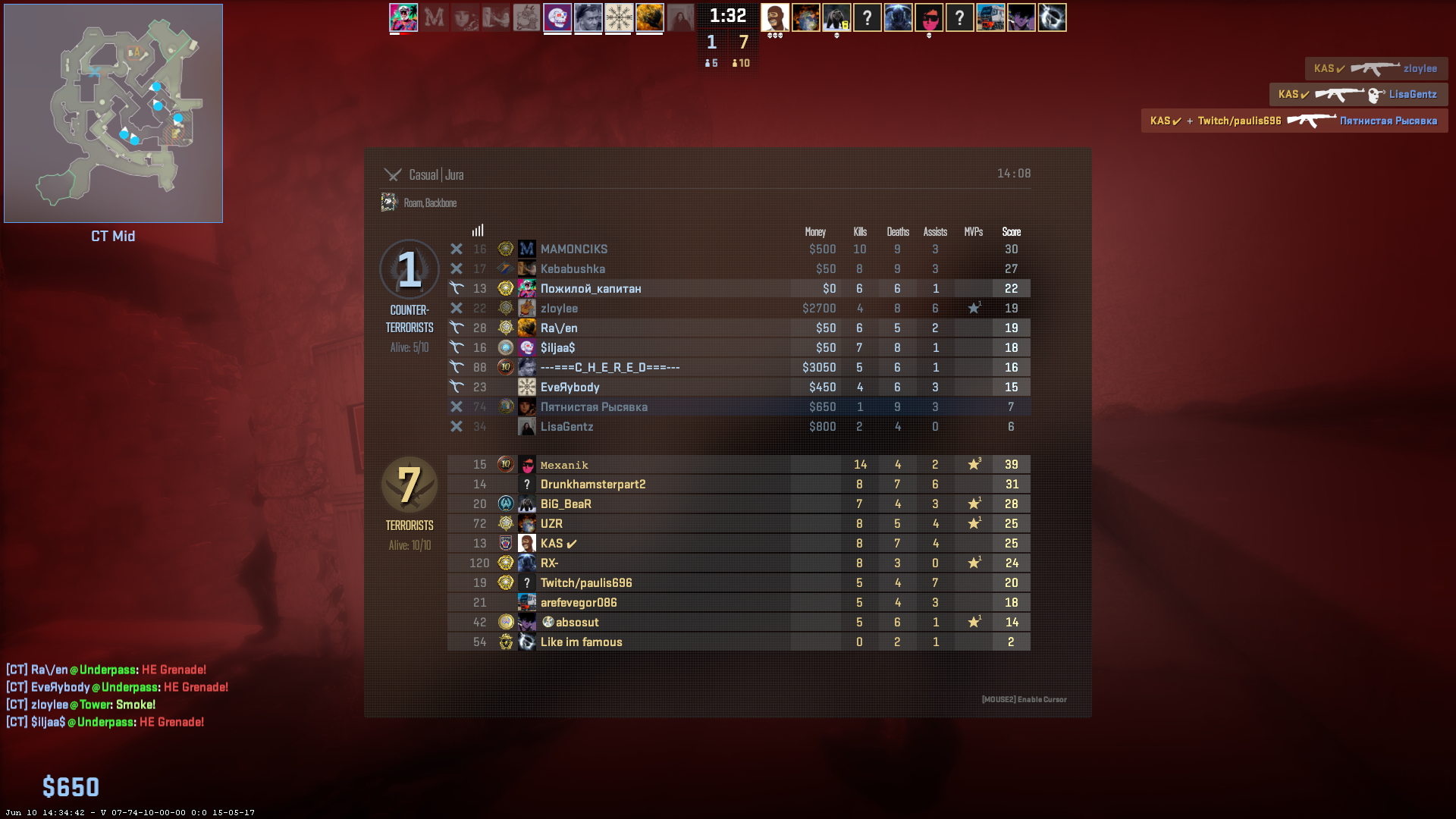 ну красивая игра ниче не скажешь, синема все 10 игроков вспотели нормально, не было что один соло, а 1-2 других на мегалоутабе даже мешки магикс зонтик и чмопер настреляли и свои моменты имели