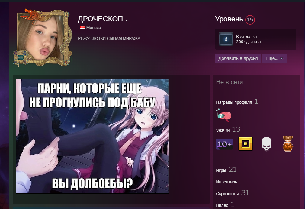 эти скамеры всегда 10-11 лвл в стиме, ставят себе арт убогий говнимешный, телку, тачку - у них наиграны тыщи часов но всегда только в бесплатный стимокал типа дота кс артифакт