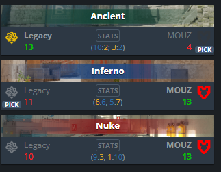 они сносят нахуй витьков 13-3 потом очень близкая карта с вп 11-13 всосали у фазы 8-13 достаточно уверенно отпиздили лин виженов, отдав всухую первую, но так же всухую забрав две следующих на яйцах а теперь 13-4 давят мышей