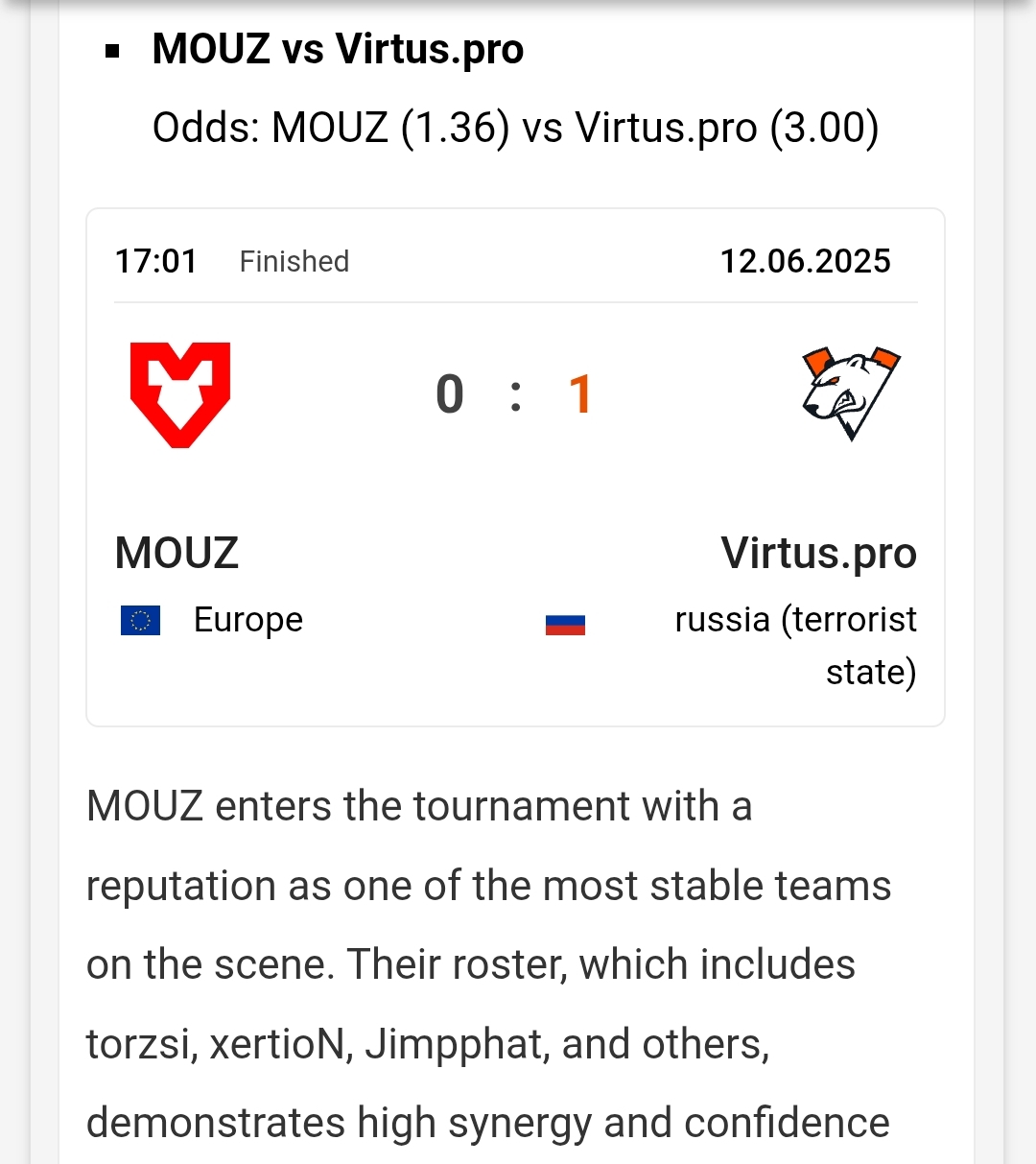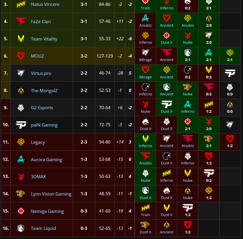 типы отсосали у лин вижен 7-13 потом еле выиграли ебаных чингиз что-то там 13-10 потом 3-13 отсосали у бумблы и ко тут уже я их списал, я говорил они в первой стадии вылетят нахуй но они берут две серии у империал и вилдкард - достаточно слабых команд