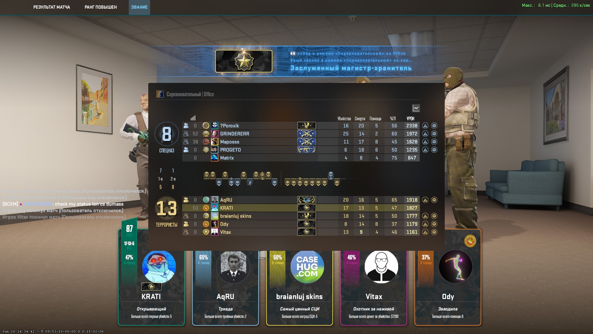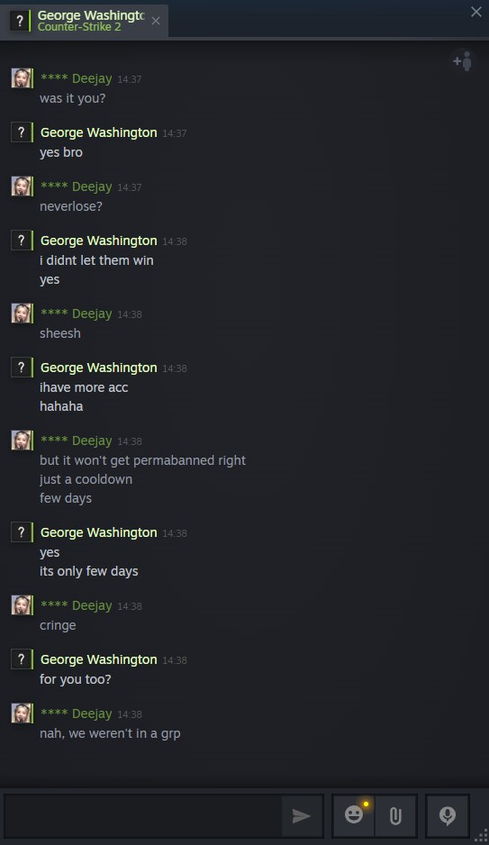 Сап. В эту игру вообще сейчас нормально выкатиться подпивасу, который последний раз играл в CS в 2013, да и то без каких-либо успехов, так, время убить. Сейчас посмотрел, все знают раскидки, страты закупы по раундам, тренируют аим, учат мувмент. В 1.6 и сурсе на серверах с тиктонитом на фоне и в старой go до скинов и ММа как-то все проще играли и на расслабоне. Хотя бы была куча чилловых серваков с ДМ на 60 рыл. Тут же даже дм какой-то не такой: мало народу на карте и все против всех, получается одновременно и какая-то каша, но при этом пусто - парадокс. Помню раньше помимо лобби был доступ к справкам по-старинке, сейчас этого не нашел даже. Пока единственным выходом увидел для себя ранкед где с такими же Сильверами хоть можно играть, но и там ебут довольно сильно, то ли даже Сильверы сейчас по скиллу как задроты в нулевых, то ли полно смурфов. Как на чилле играть в это сейчас? Или играть для удовольствия, а не заканчивать мат со счётом 5/10.