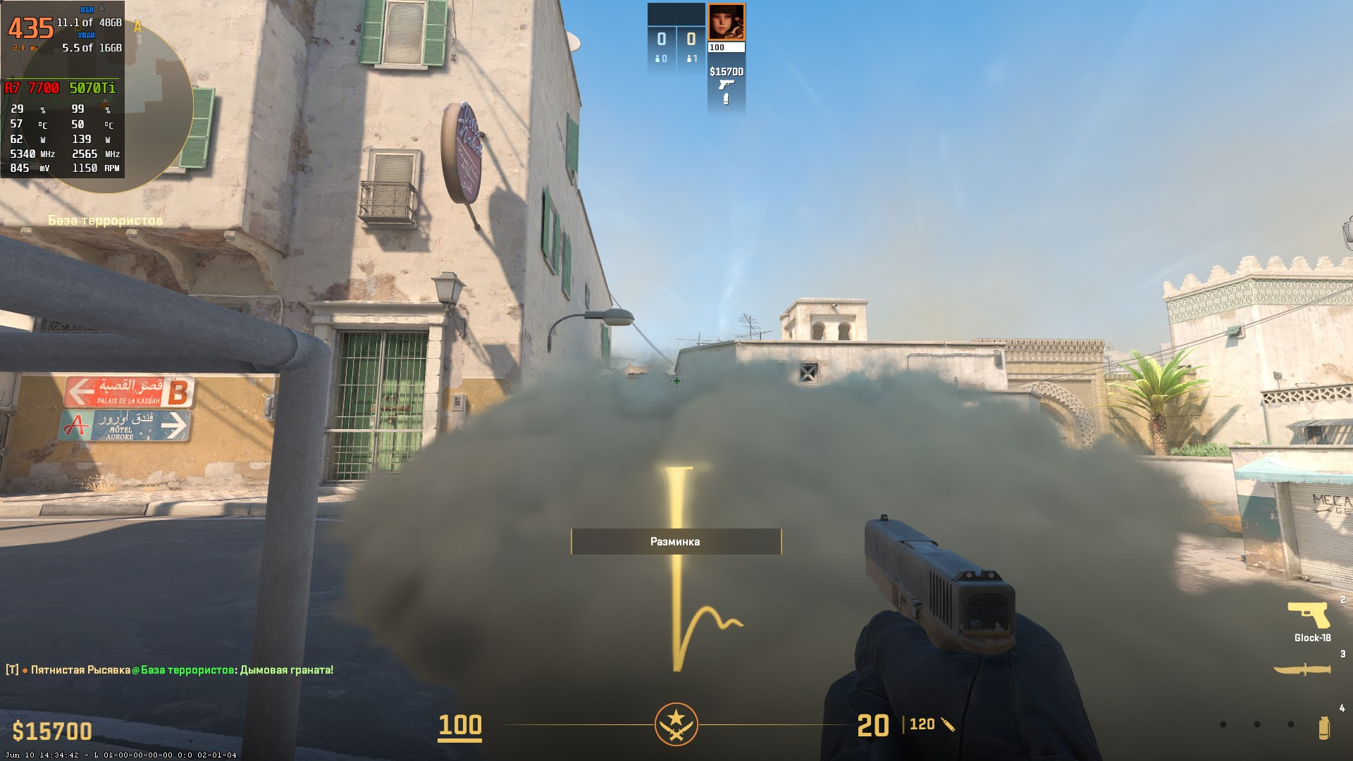 💣 4. Utility Usage (Mirage) Top mid smoke: Jump throw от стены T spawn (bind: jumpthrow)