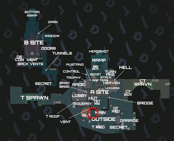 CT smoke from ramp: встать в угол у левой стены и прицел — чуть правее лампы